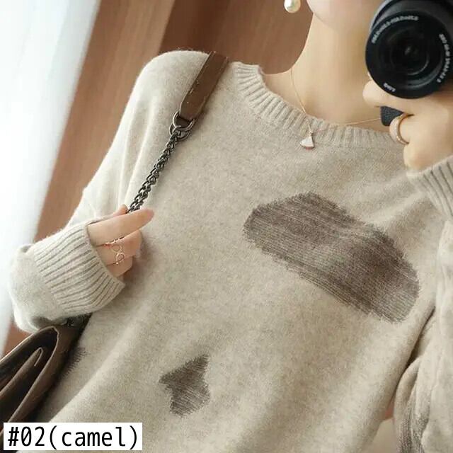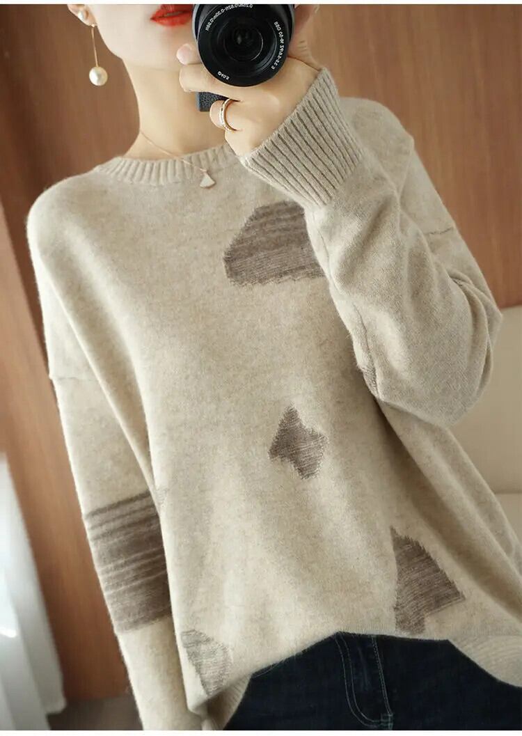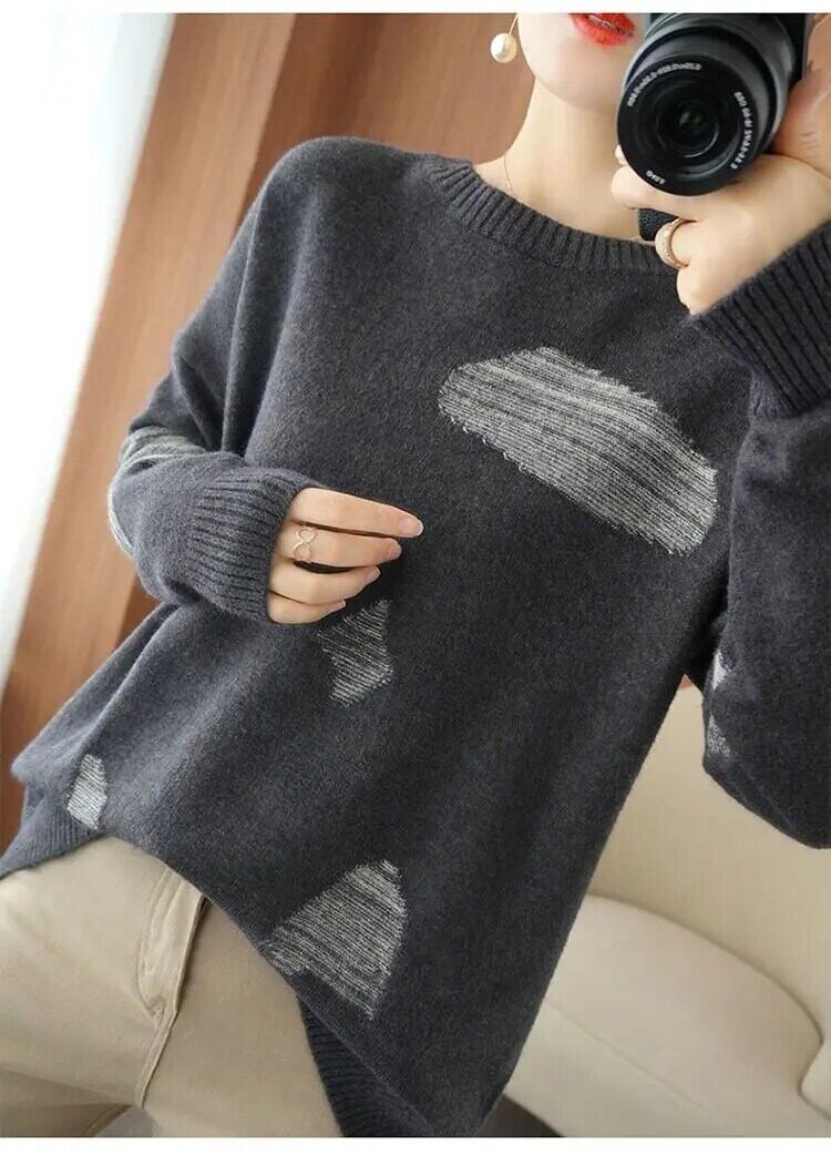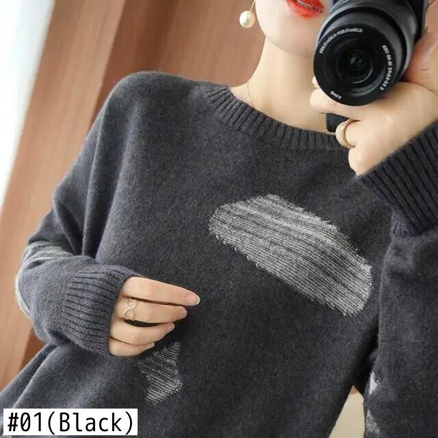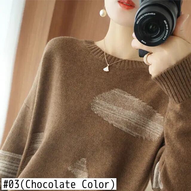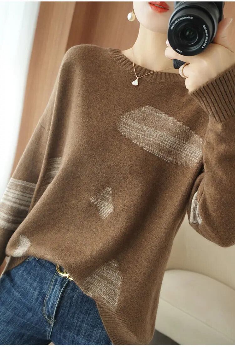 送料無料 スタイリッシュなプリント O ネックスプライスセーター女性の 2024 春オールマッチプルオーバールーズ通勤トップス スプリング 春物 Oネック AE12887766381305571