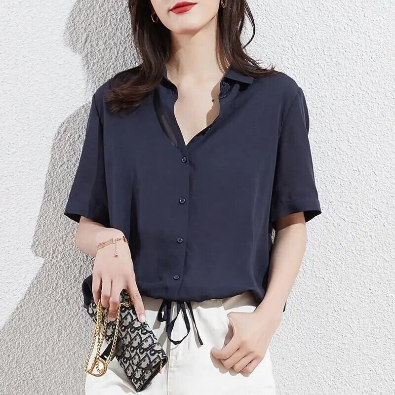 送料無料 ソリッドカラールーズ包帯リボンシャーリングシャツ2023夏オーバーサイズトップスオフィスレディブラウス サマー 夏物 会社 学校 通勤や通学にも AE1288776615977020843