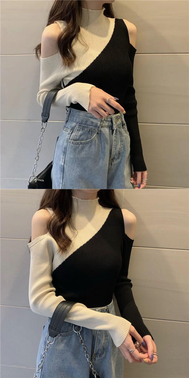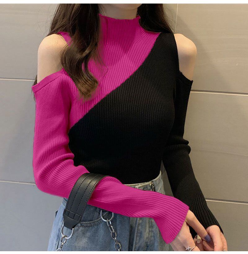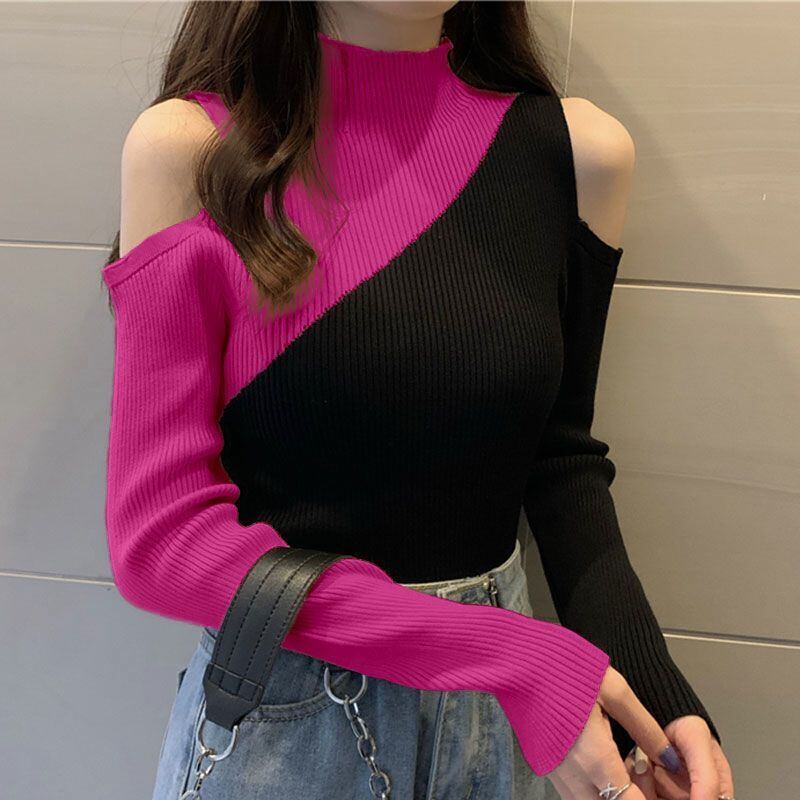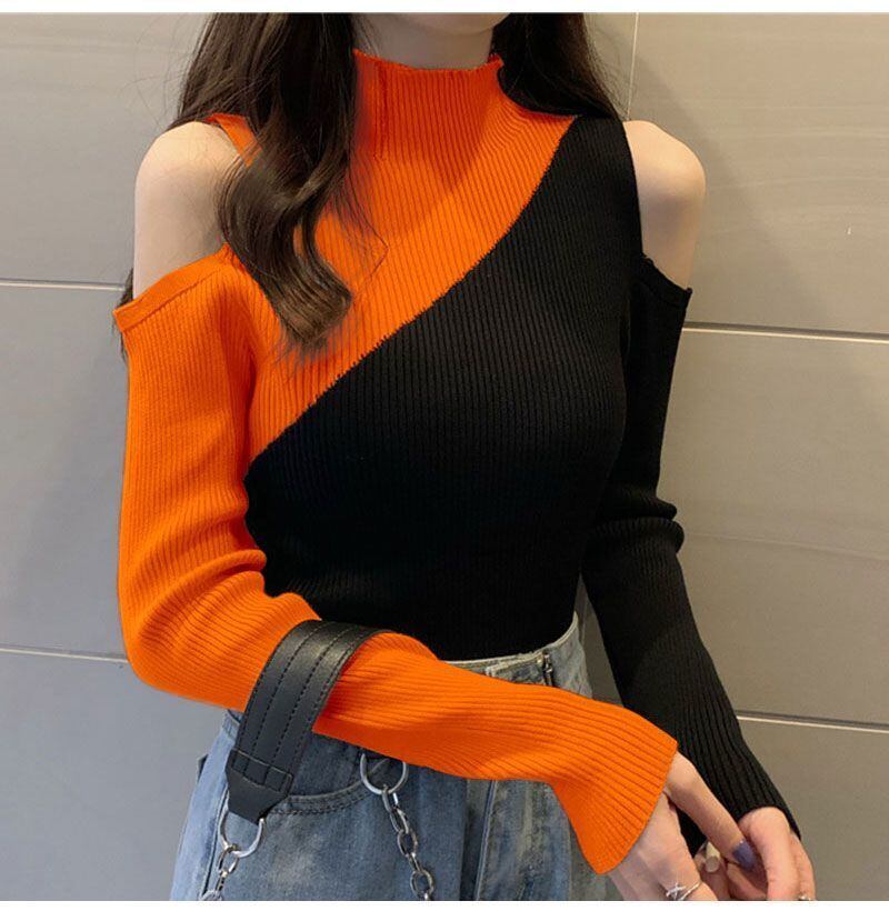 送料無料 スタンドカラースプライシングオフショルダーブラウス女性の 2023 秋冬スリムプルオーバーオフィスレディシャツ オータム 秋物 ウィンター 冬物 会社 学校 通勤や通学にも AE1288776660990336655