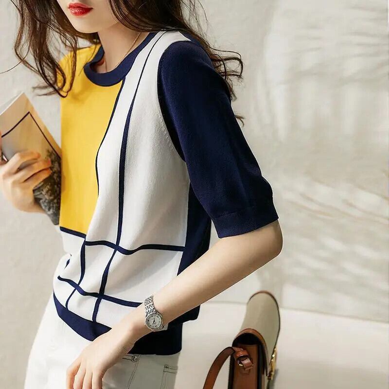 送料無料 O ネックスプライスストライプブラウス女性の 2023 春ルーズプルオーバーオールマッチオフィスレディシャツ スプリング 春物 Oネック 会社 学校 通勤や通学にも AE1288776657323727360