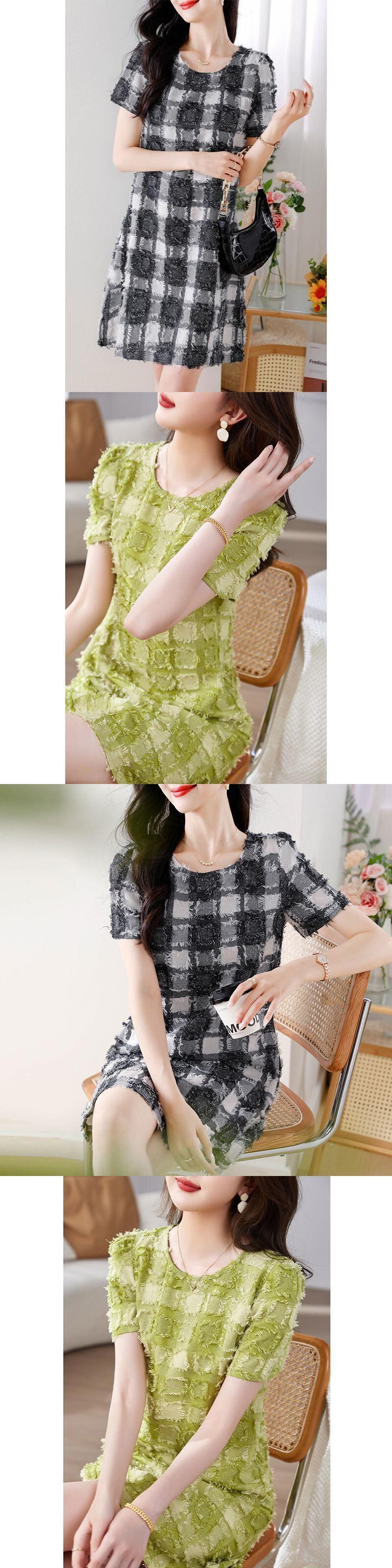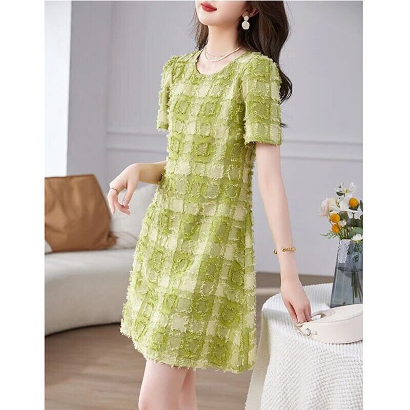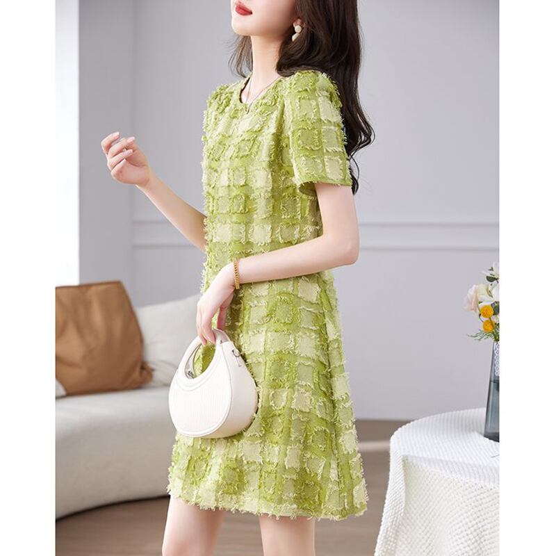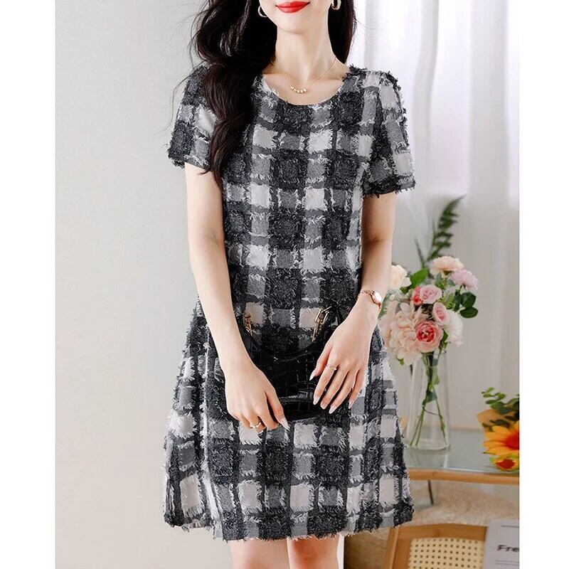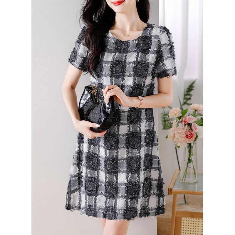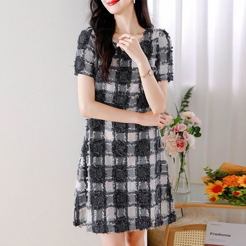 送料無料 O ネックルーズチェック柄半袖ドレスレディース 2024 夏半袖オフィスレディドレス ショート ハーフスリーブ サマー 夏物 Oネック 会社 学校 通勤や通学にも AE1288776670458218450