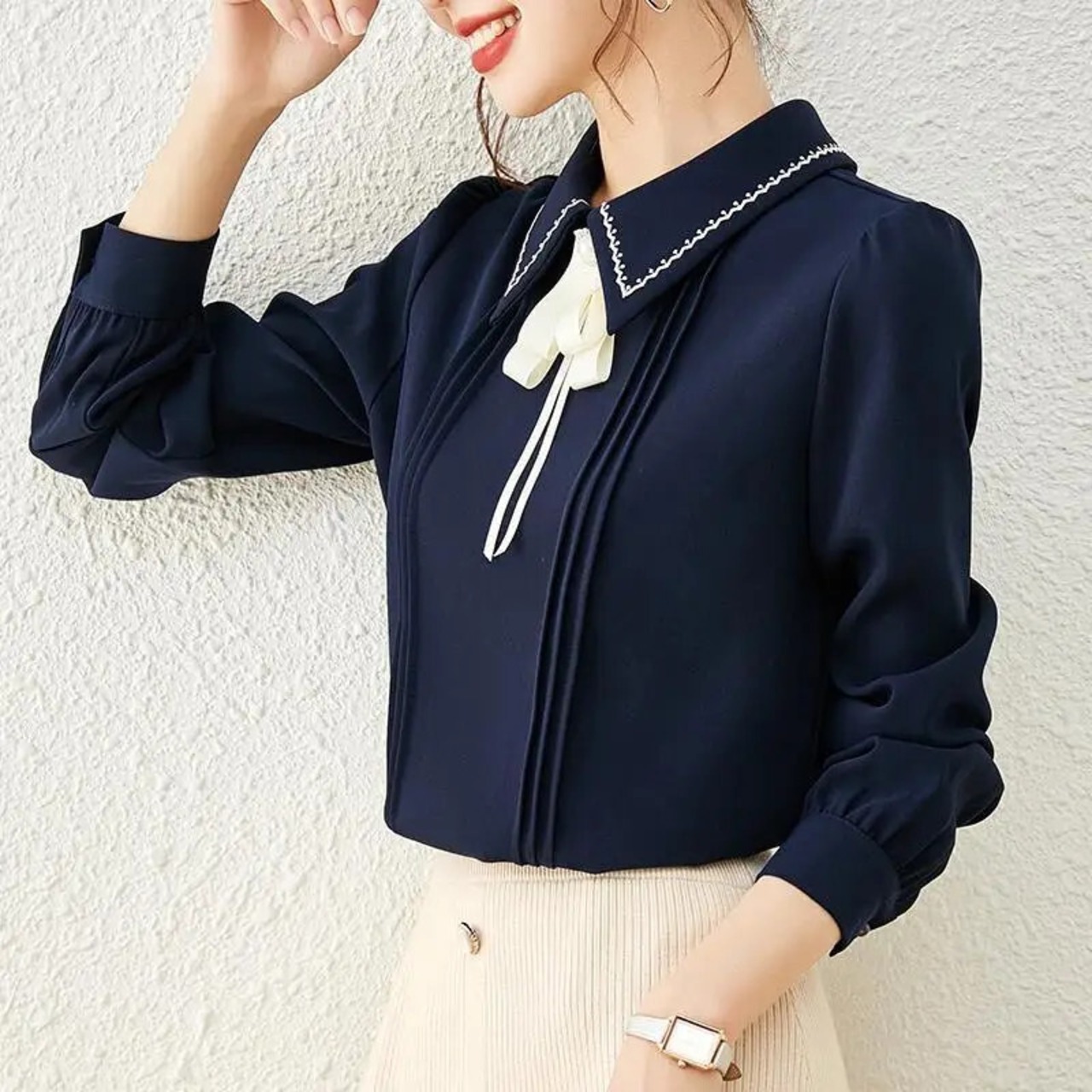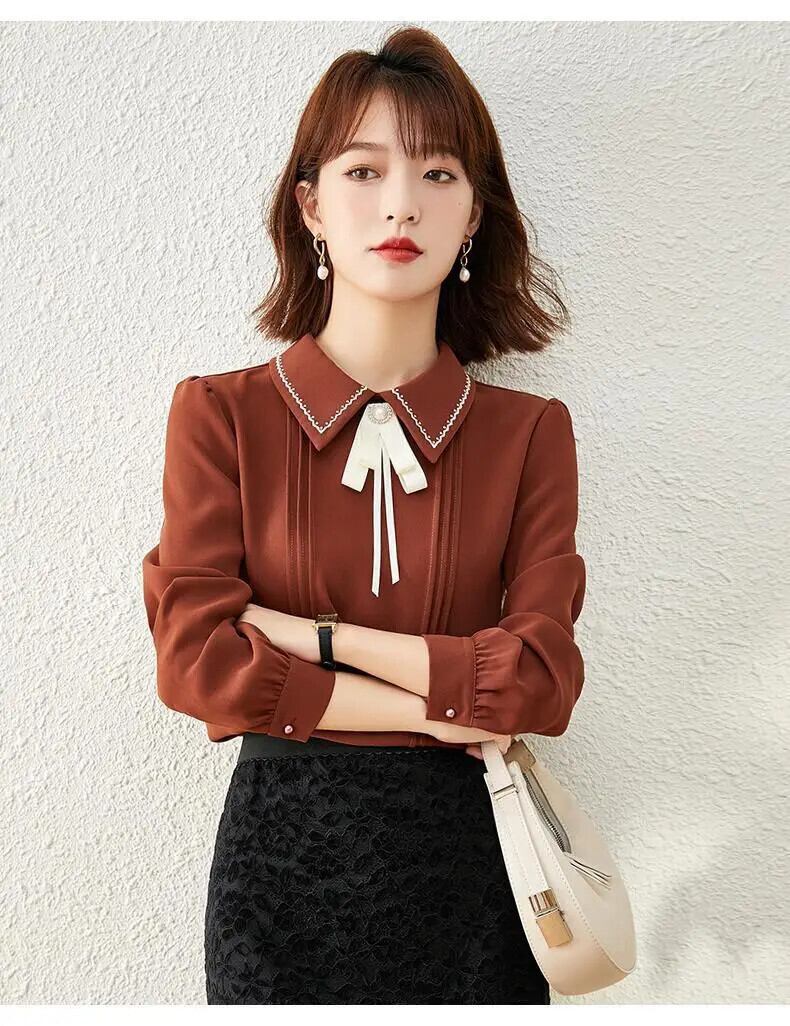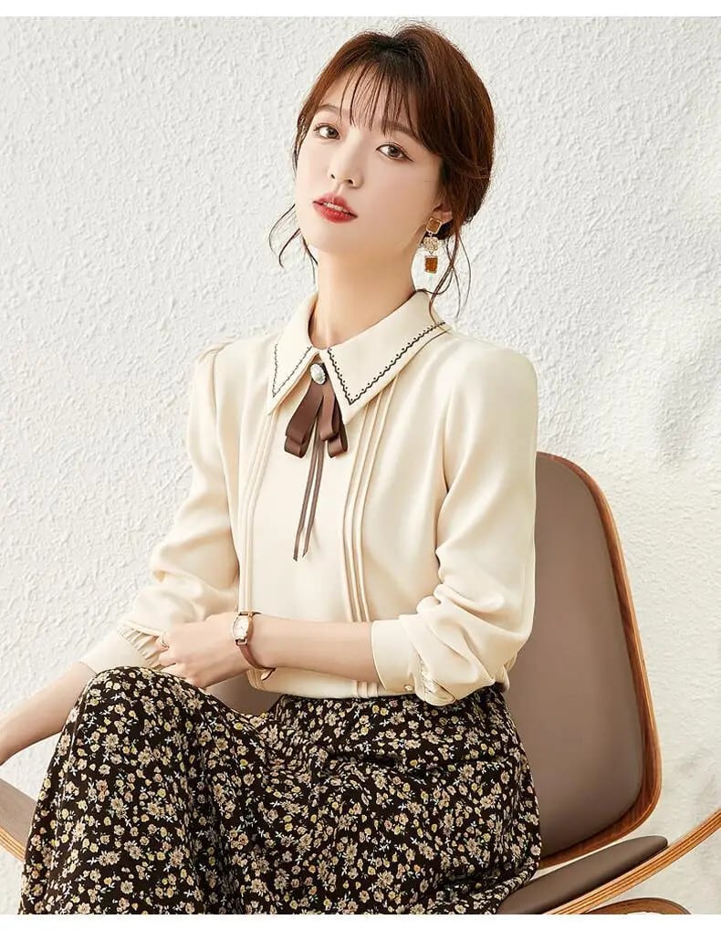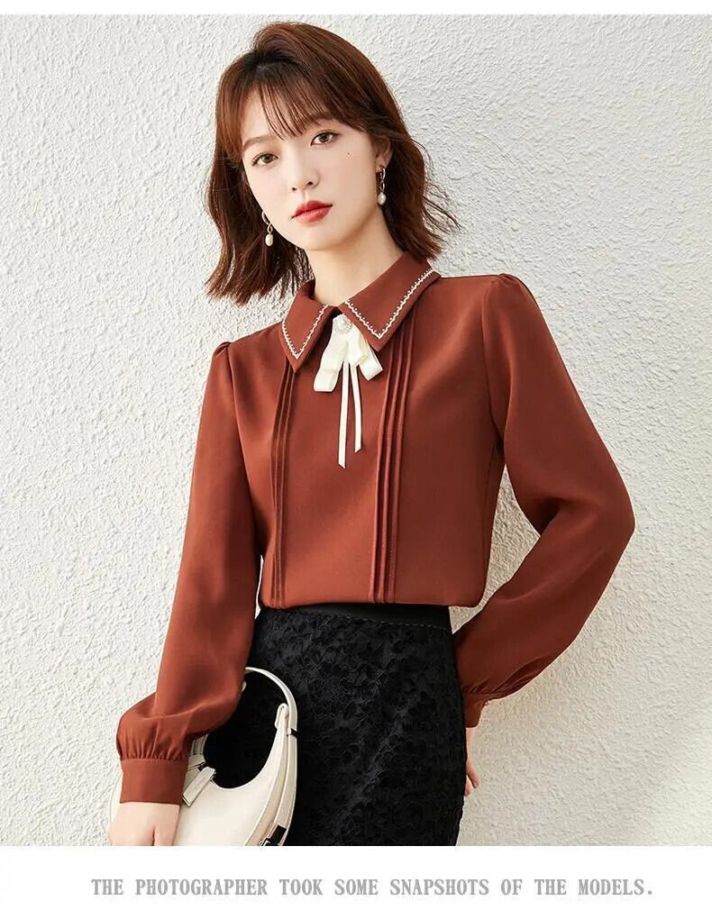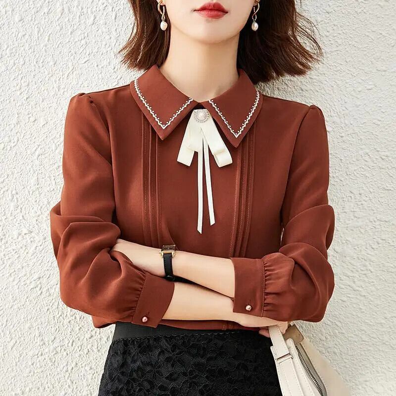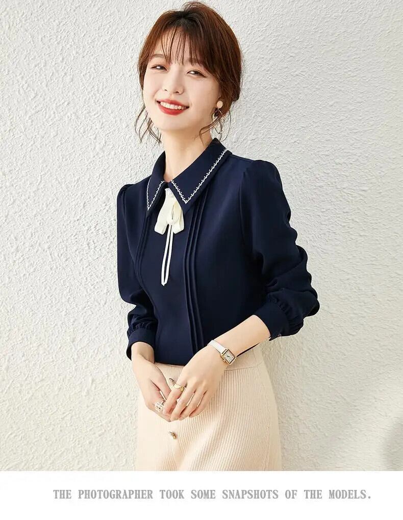 送料無料 甘いボタンスプライシング刺繍リボンシフォンブラウス女性の 2023 春プルオーバールーズオフィスレディシャツ 大人ガーリー スウィート キュート カジュアル スプリング 春物 会社 学校 通勤や通学にも AE128877666727057916