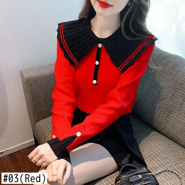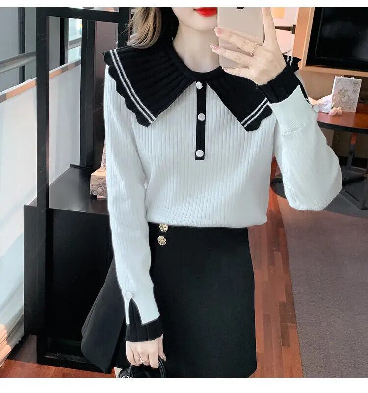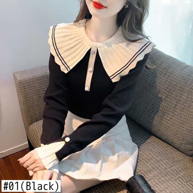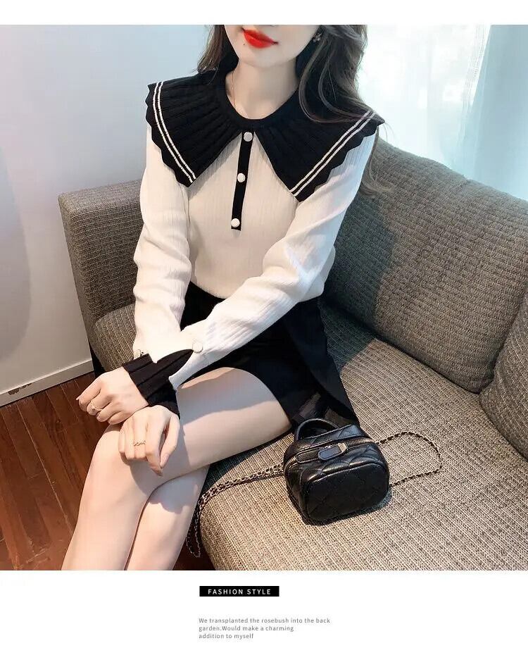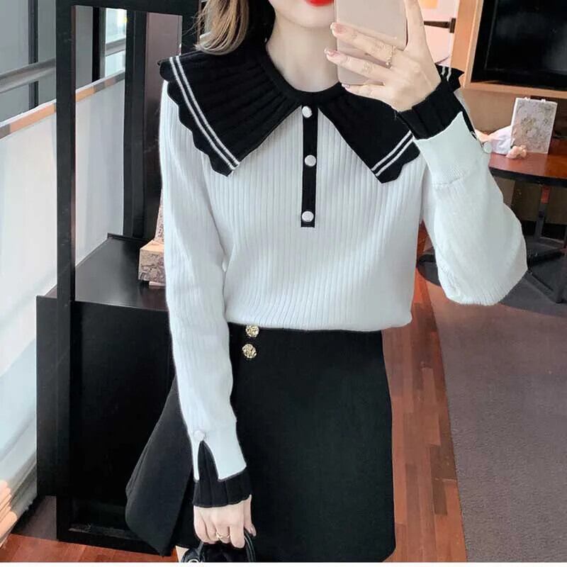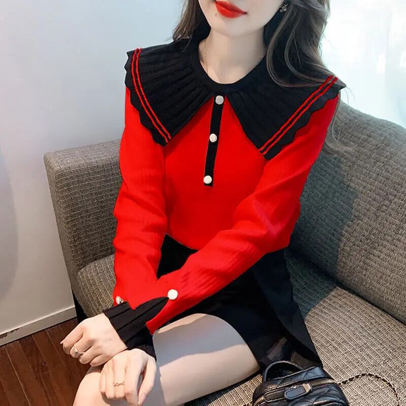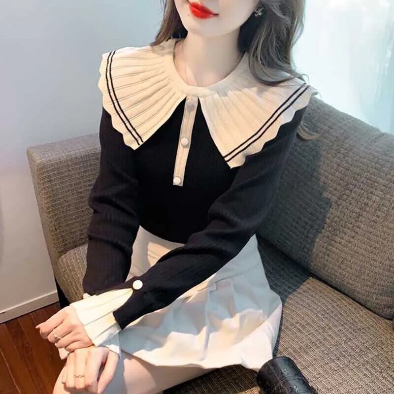 送料無料 甘いピーターパンカラーボタンスプライスブラウス 2024 春ルーズオールマッチトップスニットシャツ 大人ガーリー スウィート キュート カジュアル スプリング 春物 AE1288776634269650853