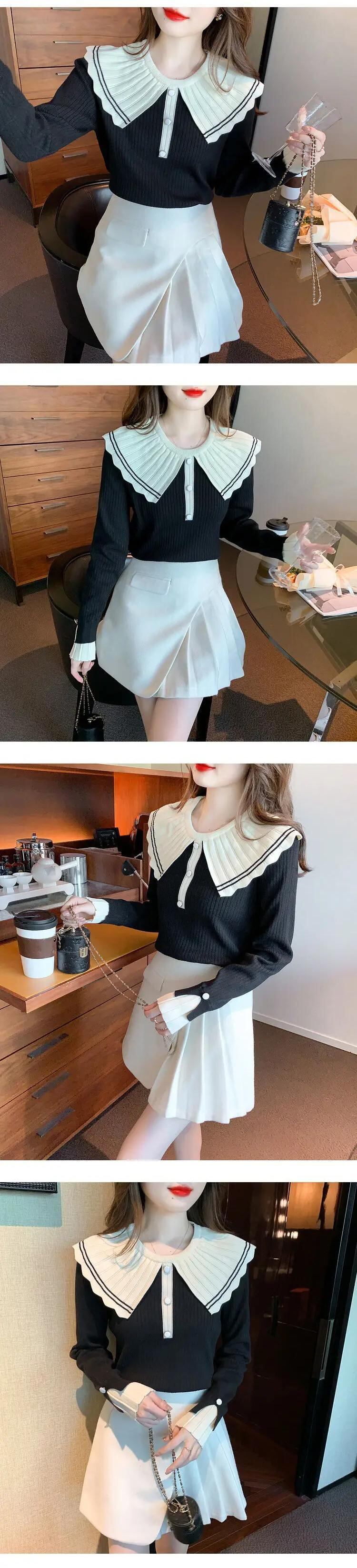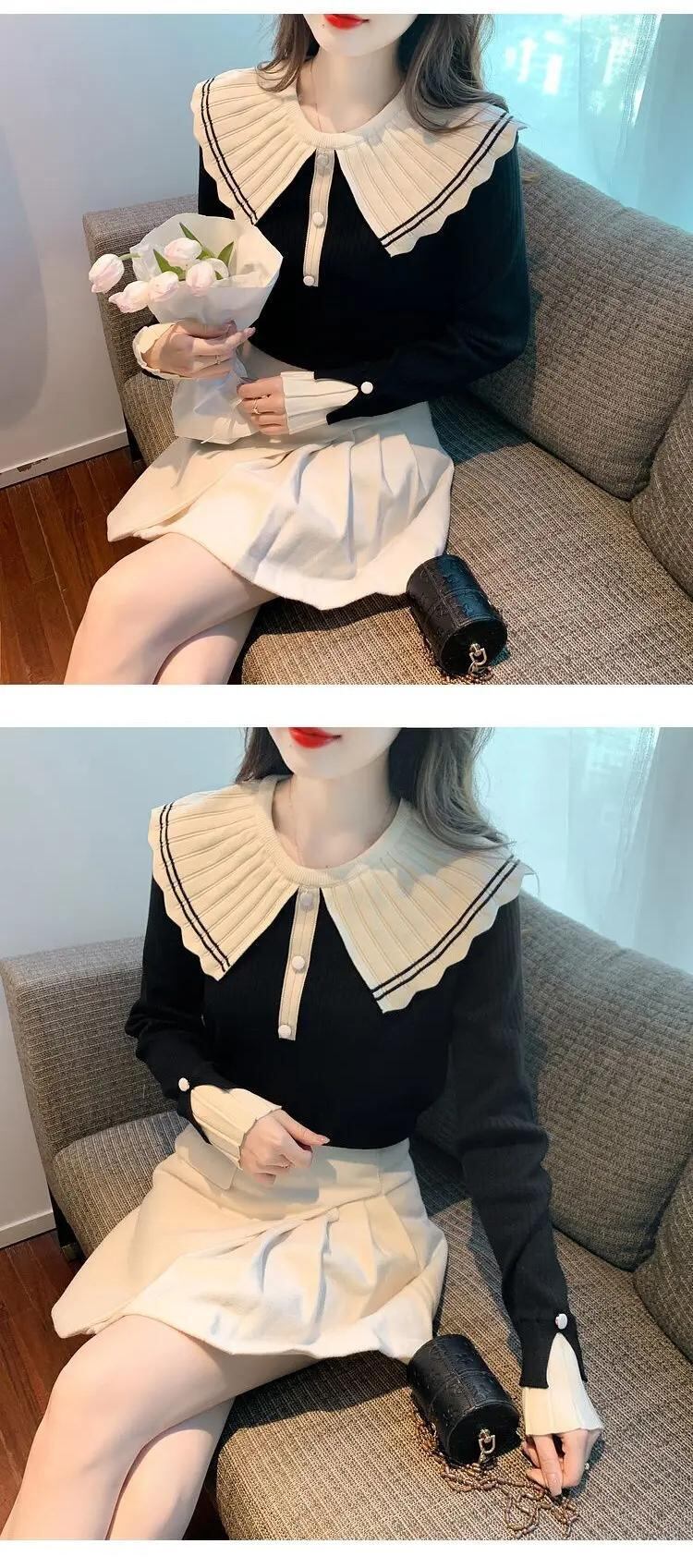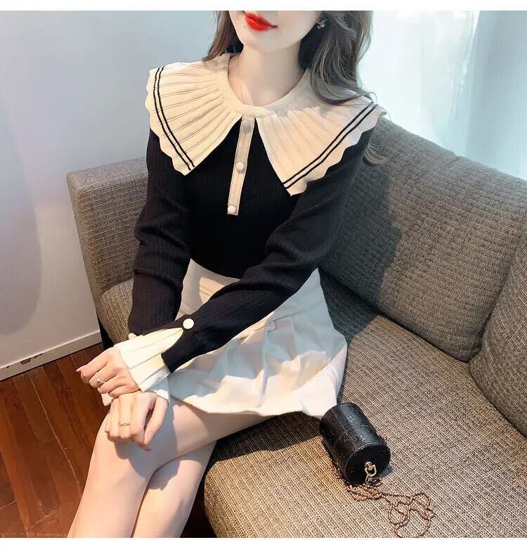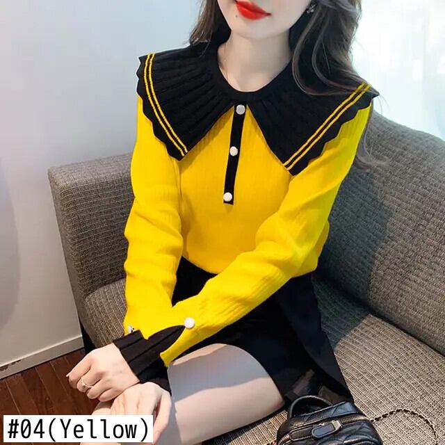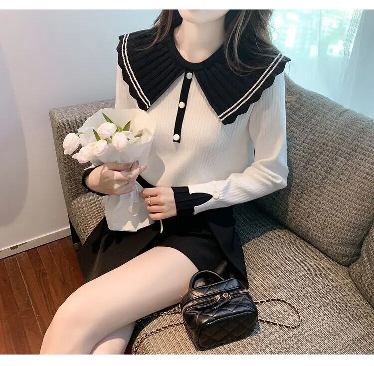 送料無料 甘いピーターパンカラーボタンスプライスブラウス 2024 春ルーズオールマッチトップスニットシャツ 大人ガーリー スウィート キュート カジュアル スプリング 春物 AE1288776634269650853