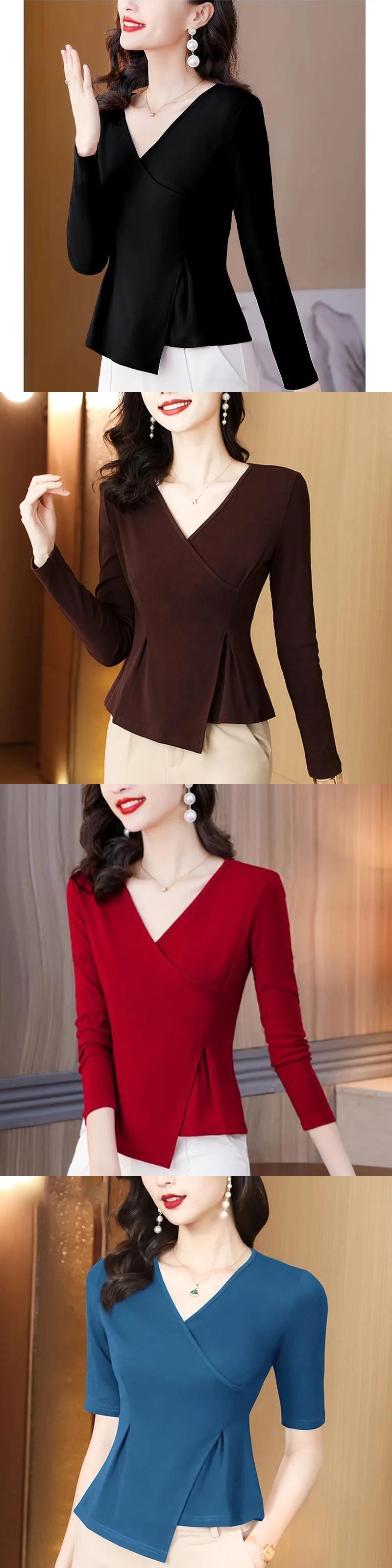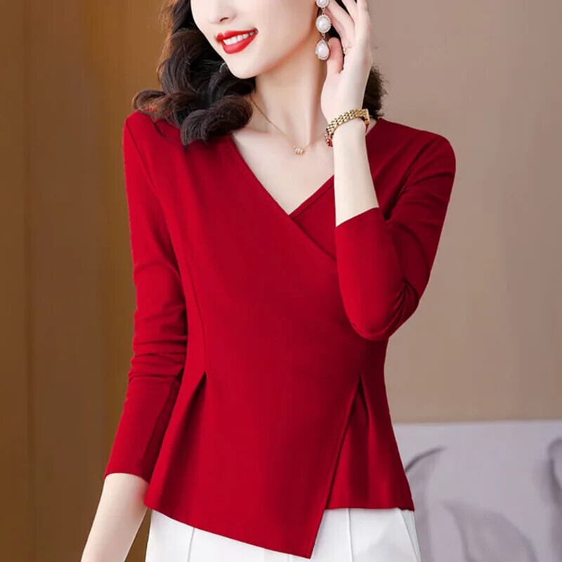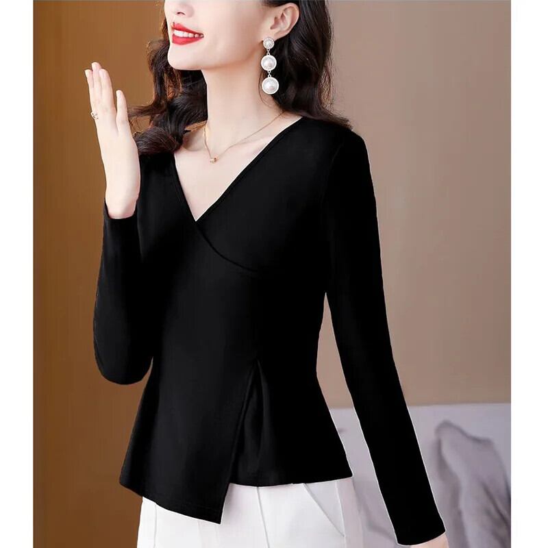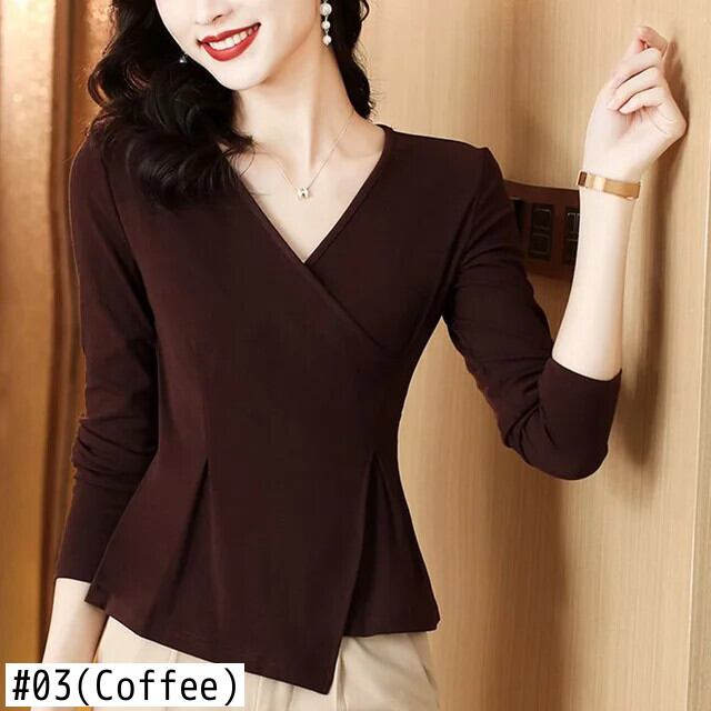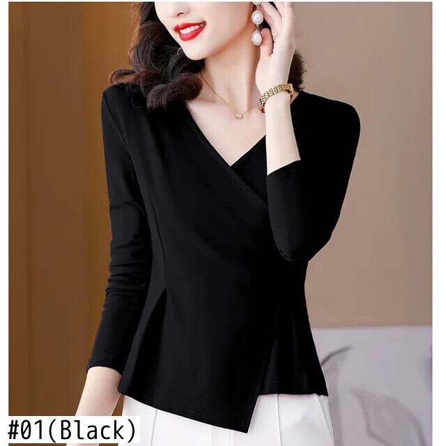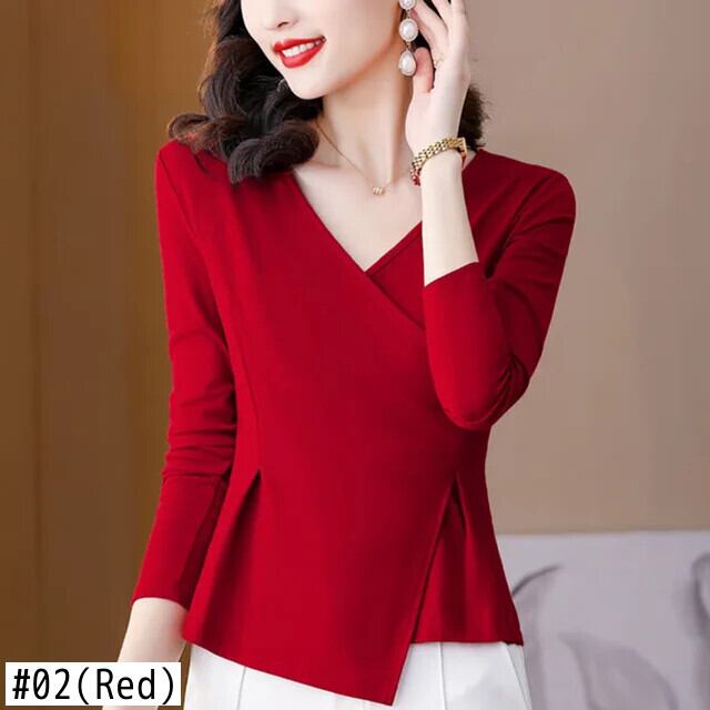 送料無料 スタイリッシュなソリッドカラーのスプライス緩いひだ不規則なブラウス女性の 2023 秋プルオーバー非対称シャツ オータム 秋物 AE1288776670292411101