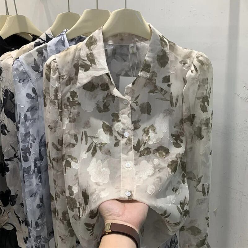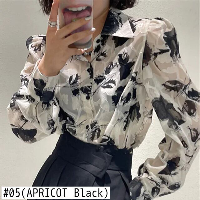 送料無料 ヴィンテージプリントラペルルーズひだパフスリーブシャツ女性の 2023 秋トップスオールマッチオフィスレディブラウス オータム 秋物 ビンテージ 会社 学校 通勤や通学にも AE1288776612485298919