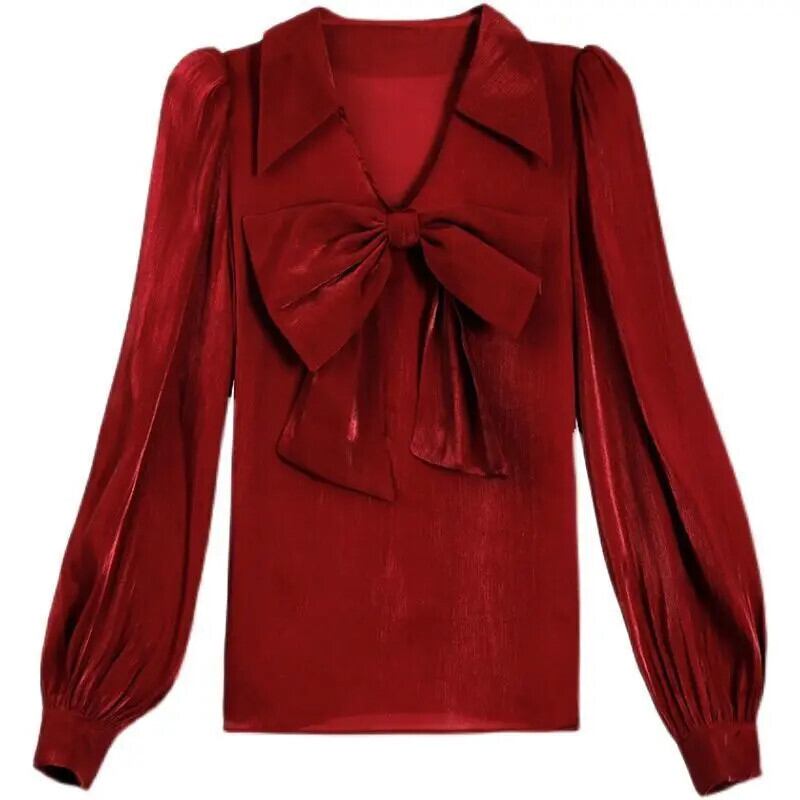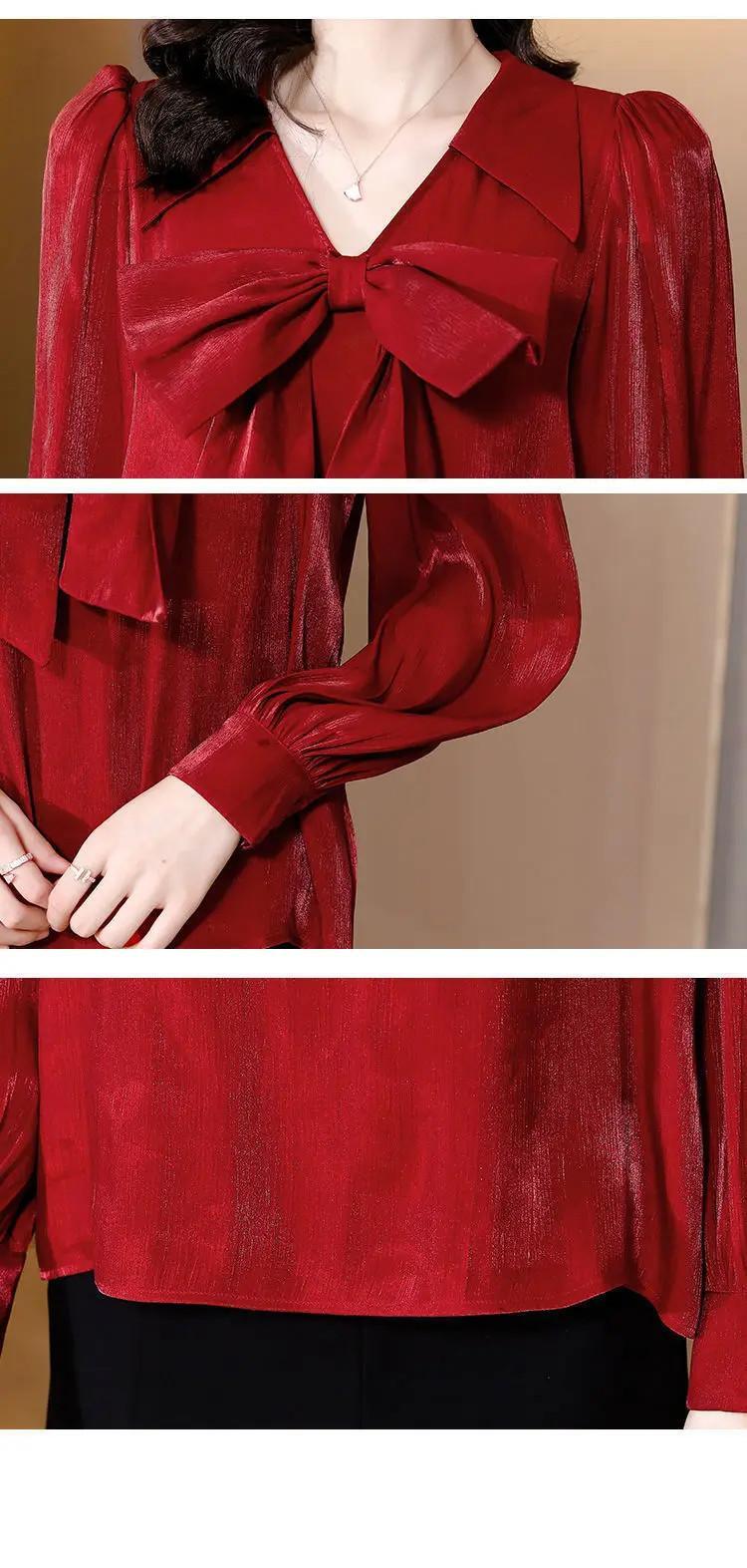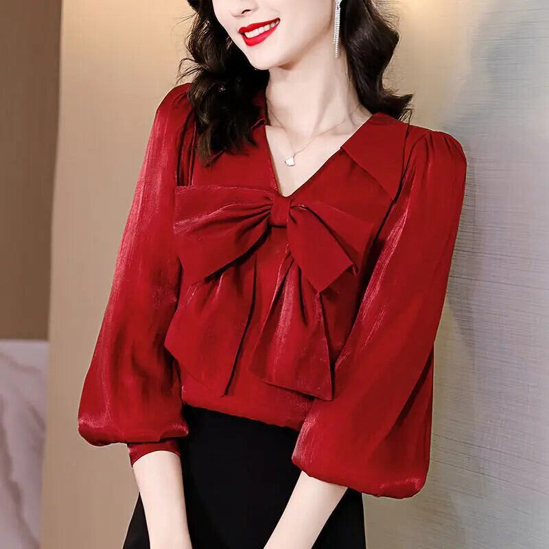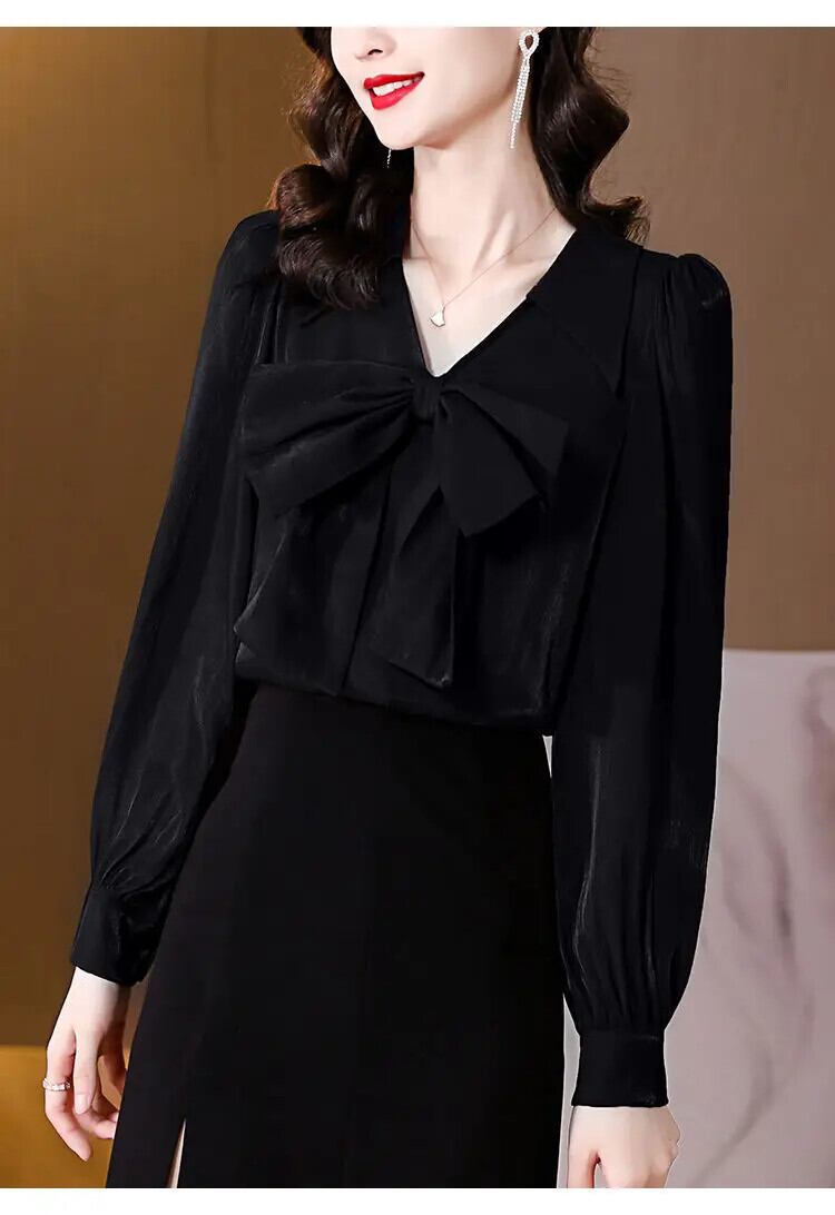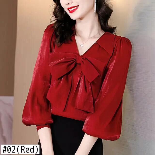 送料無料 ボウランタン長袖シャツ女性 2022 春オフィスレディ V ネックルーズ特大通勤ブラウス ロング リボン スプリング 春物 Vネック 会社 学校 通勤や通学にも AE1288776636667796653