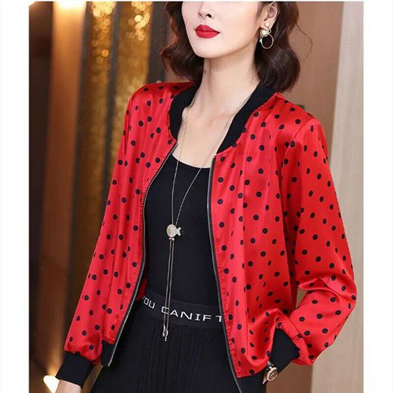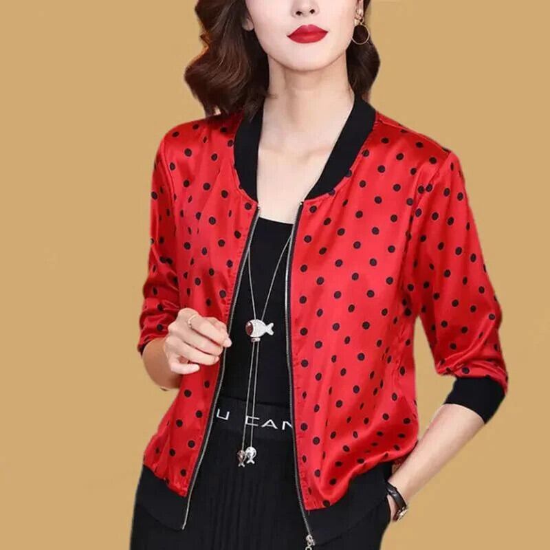 送料無料 ルーズスプライスジッパー水玉コート女性の 2023 秋特大トップスオールマッチ通勤ジャケット オータム 秋物 AE1288776653150518444