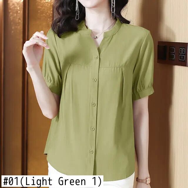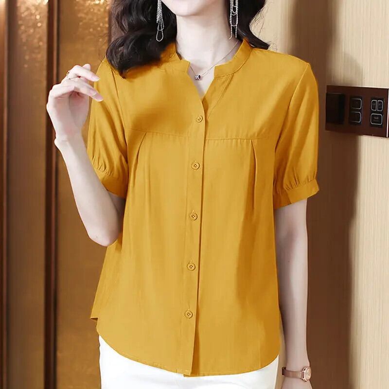 送料無料 ソリッドカラーボタンスプライシングルーズひだシャツ女性の2024春特大トップスオフィスレディブラウス スプリング 春物 会社 学校 通勤や通学にも AE1288776625388487742