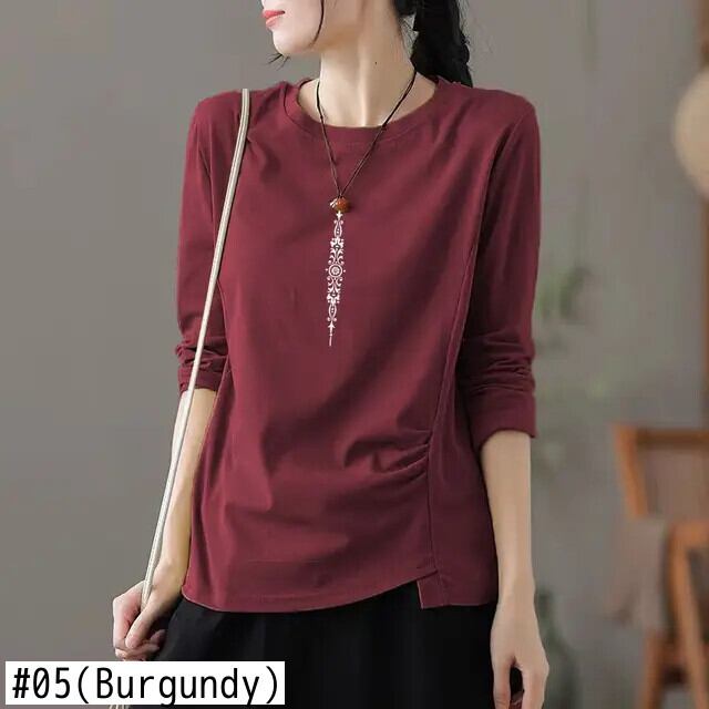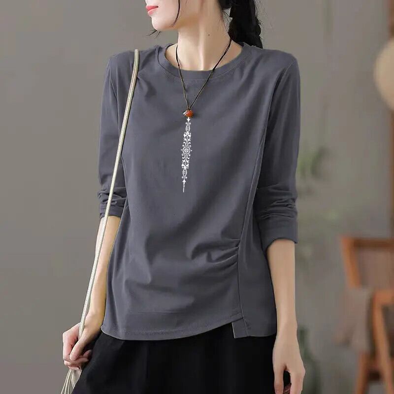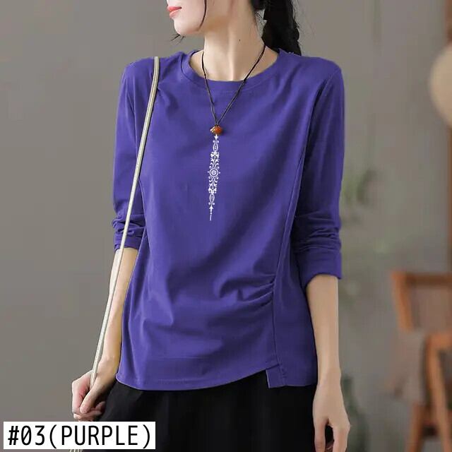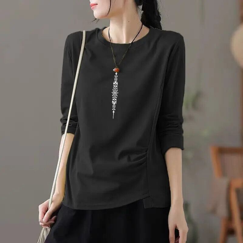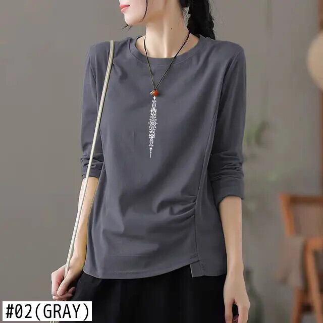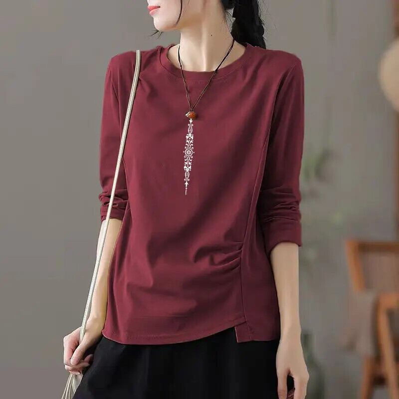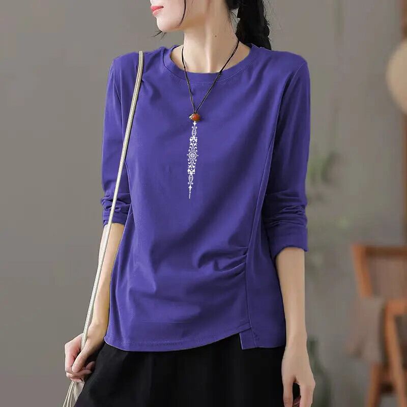 送料無料 O ネックソリッドカラーひだブラウス女性の 2022 秋特大トップスオールマッチ通勤シャツ オータム 秋物 Oネック AE1288776682324224398