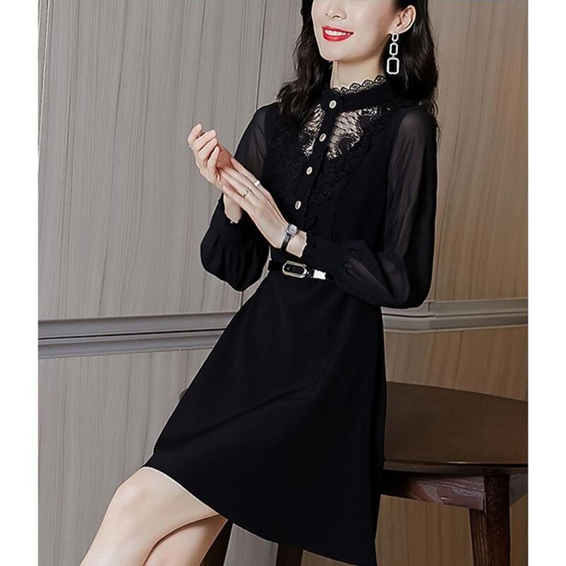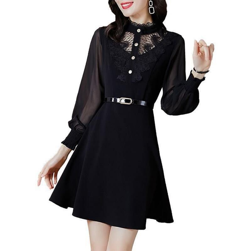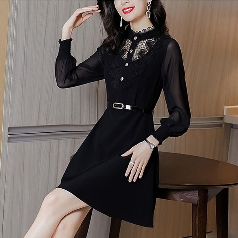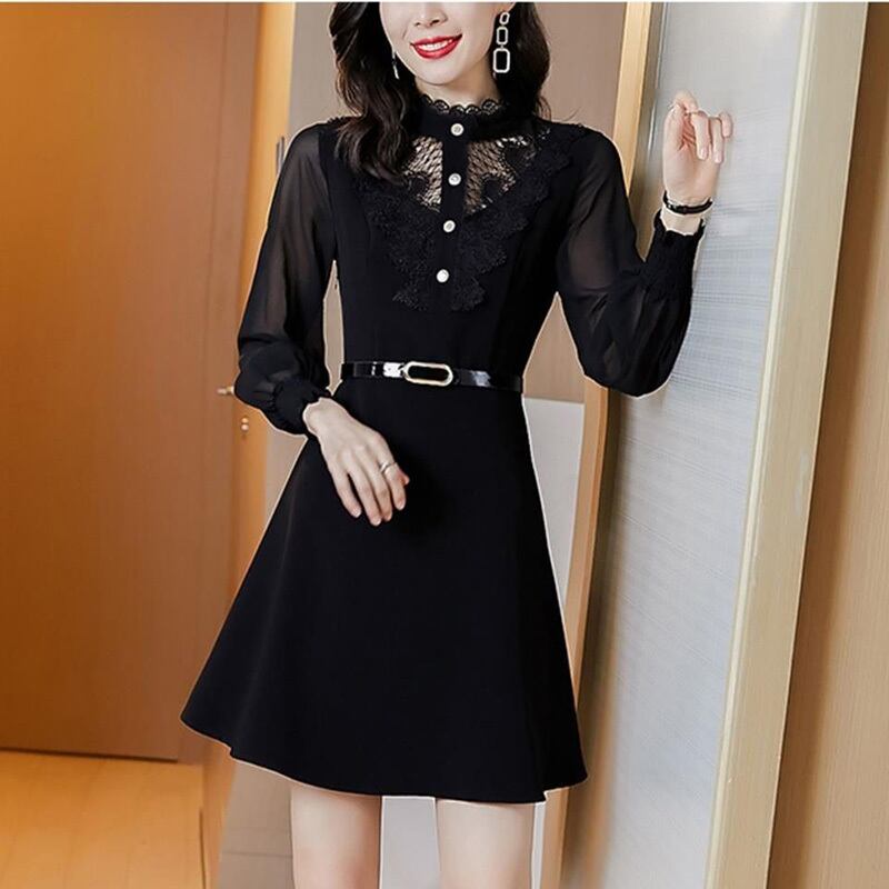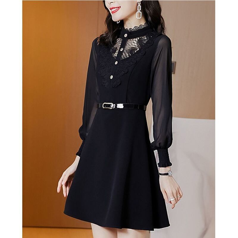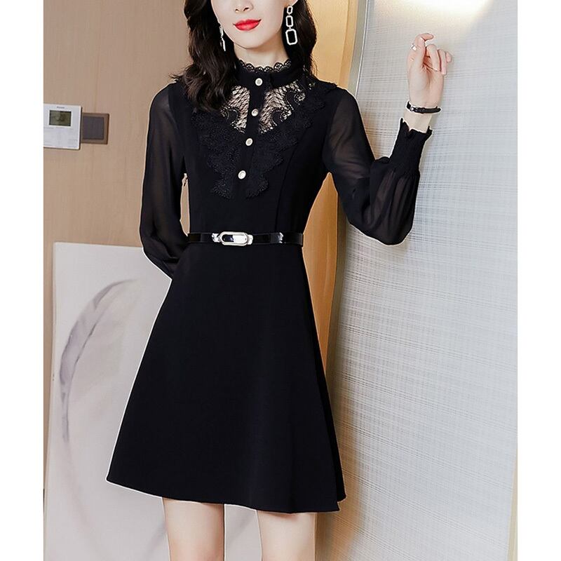 送料無料 フリルボタンスプライシング中空アウトレースミニドレス女性の 2023 秋特大オフィスレディドレス ラッフル オータム 秋物 会社 学校 通勤や通学にも AE1288776662758521093
