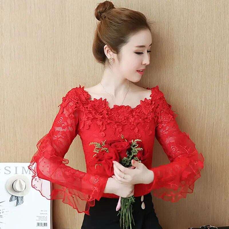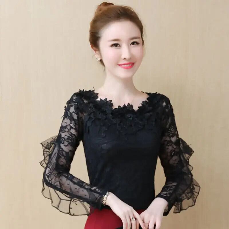 送料無料 レース中空アウト刺繍ブラウス女性 2023 秋冬ルーズトップスバタフライスリーブシャツ オータム 秋物 ウィンター 冬物 AE128877666290979814