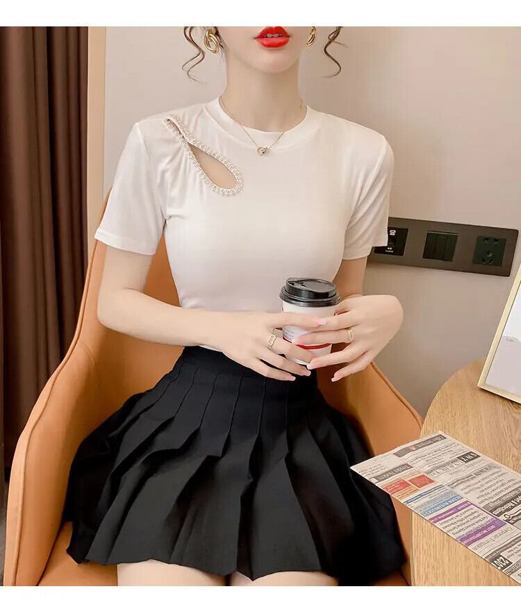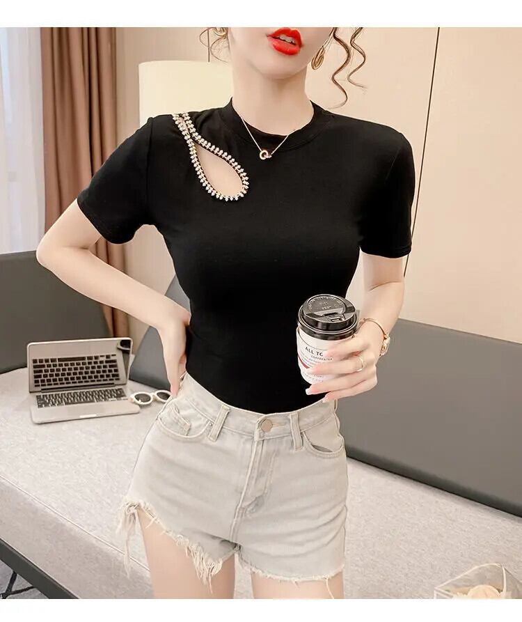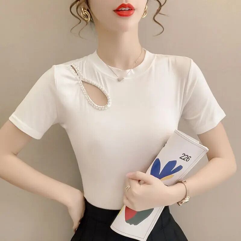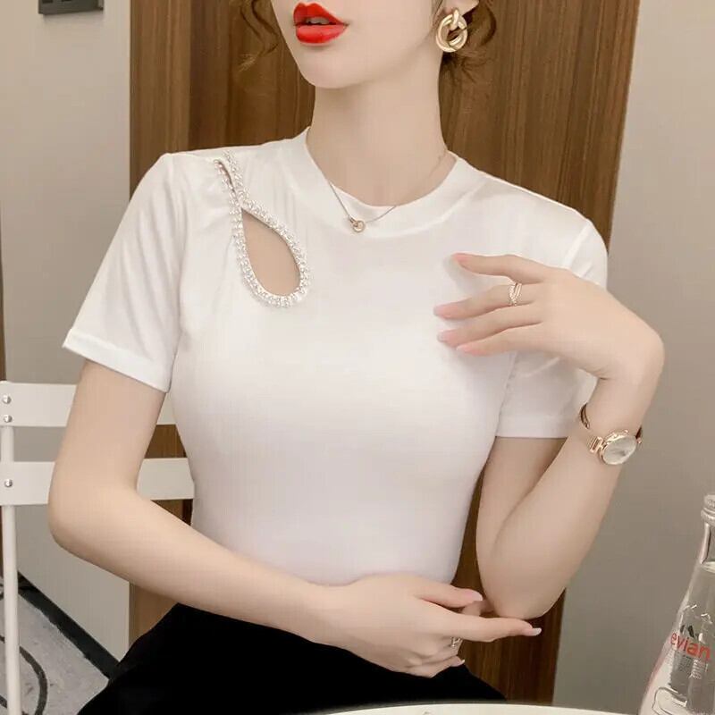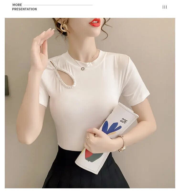 送料無料 O ネック非対称ダイヤモンド ブラウス女性の 2023 夏プルオーバーオールマッチオフィスレディシャツ サマー 夏物 Oネック 会社 学校 通勤や通学にも AE1288776674739659876