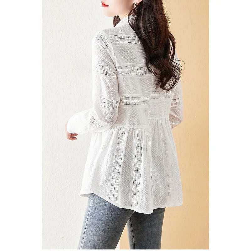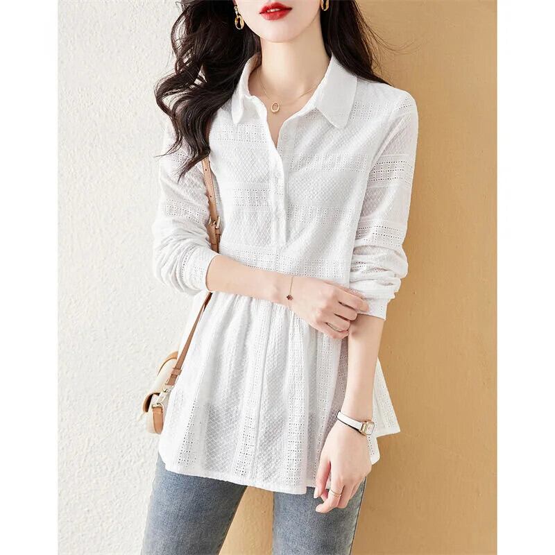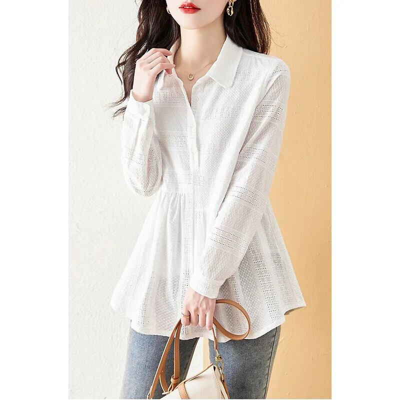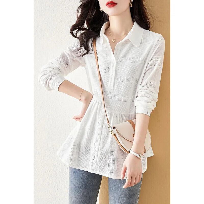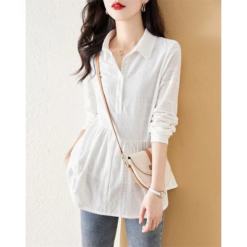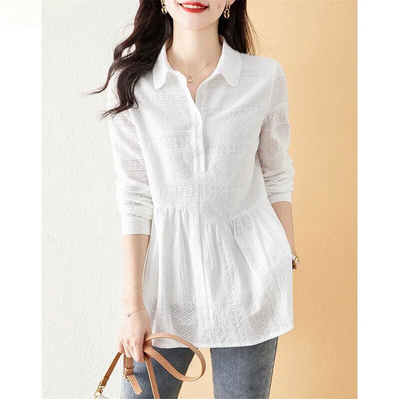 送料無料 ソリッドカラーボタンスプライス折り目ブラウス女性の 2023 春夏プルオーバールーズ通勤シャツ スプリング 春物 サマー 夏物 AE1288776613234806372