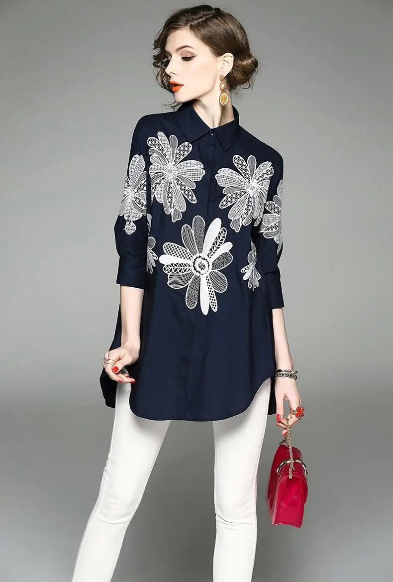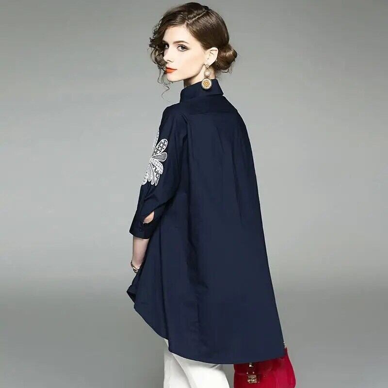 送料無料 レース刺繍不規則なシャツの女性の 2022 秋特大トップスオフィスレディ非対称ブラウス オータム 秋物 会社 学校 通勤や通学にも AE1288776641214567119