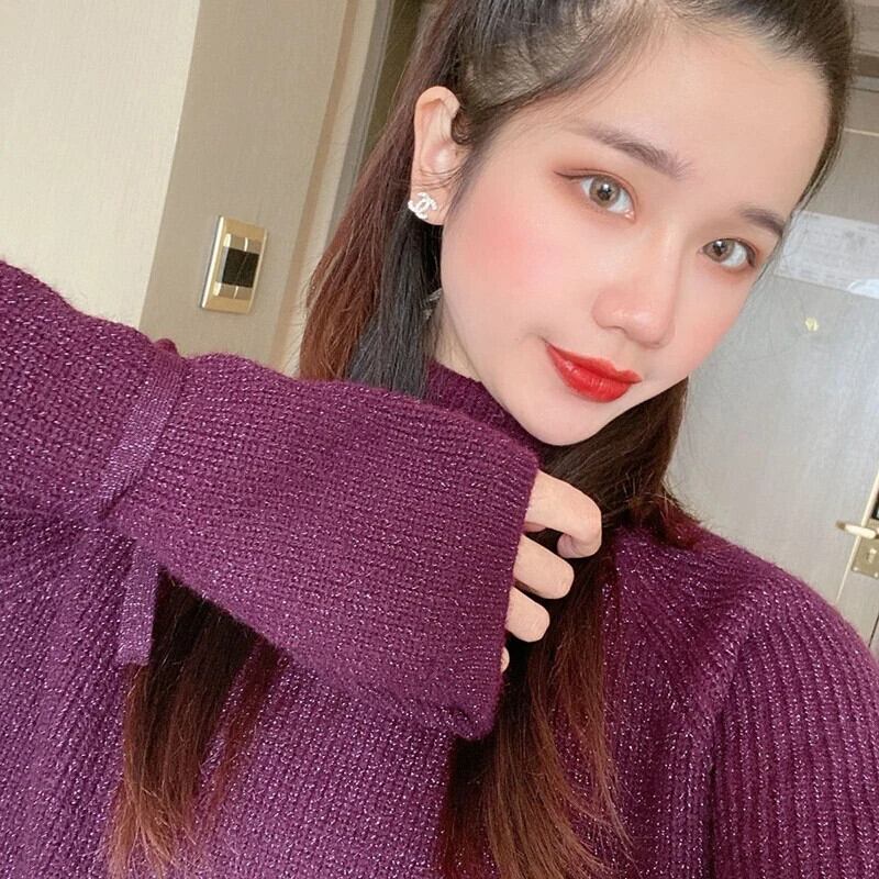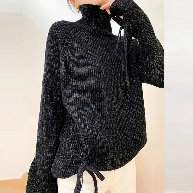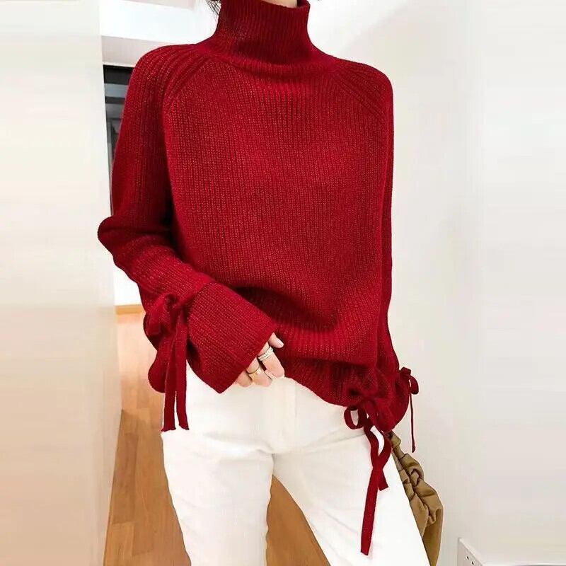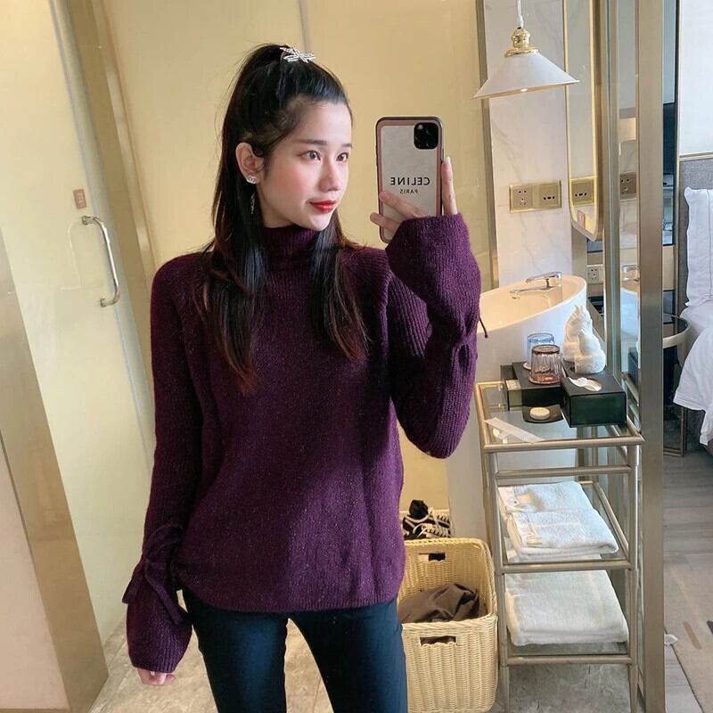 送料無料 タートルネック明るいシルク包帯セーター女性の 2023 冬ルーズニットプルオーバーフレアスリーブトップス ウィンター 冬物 AE1288776686508685934
