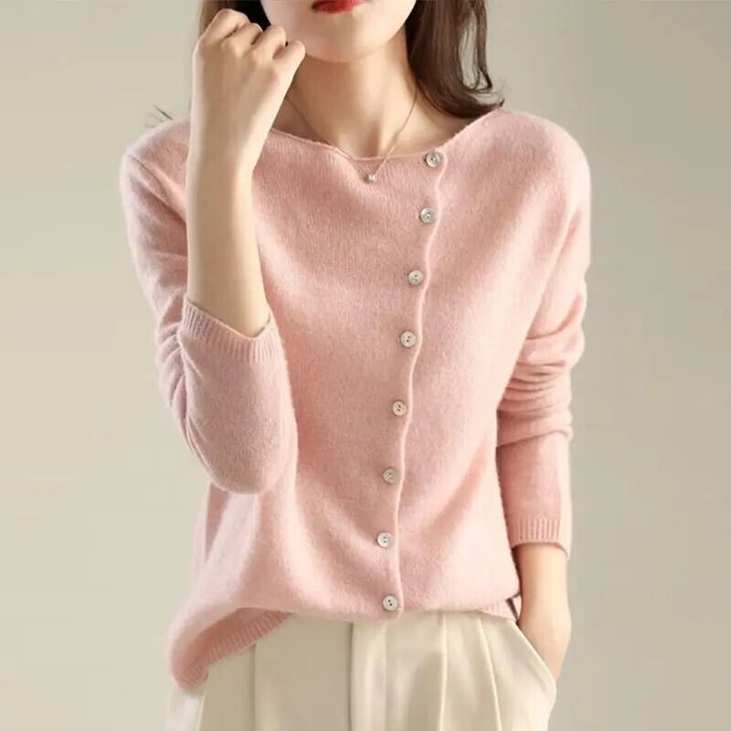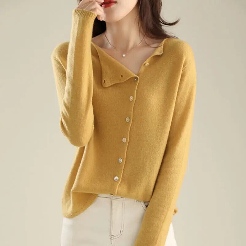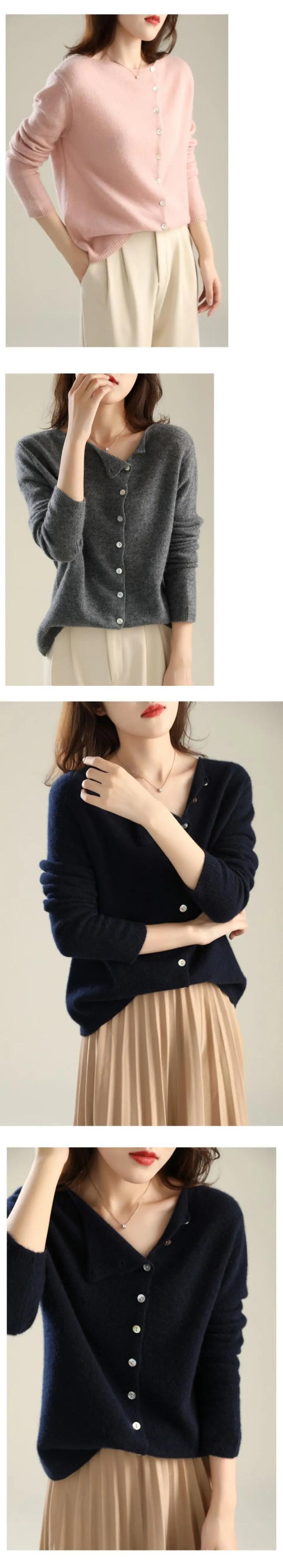 送料無料 ソリッドカラーニットボタンスプライシングオールマッチシャツ女性の2022秋トップスルーズシックブラウス オータム 秋物 AE1288776654983638201