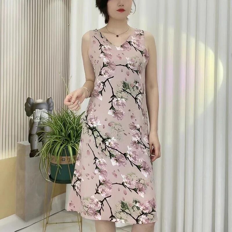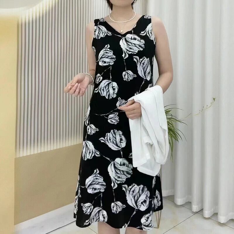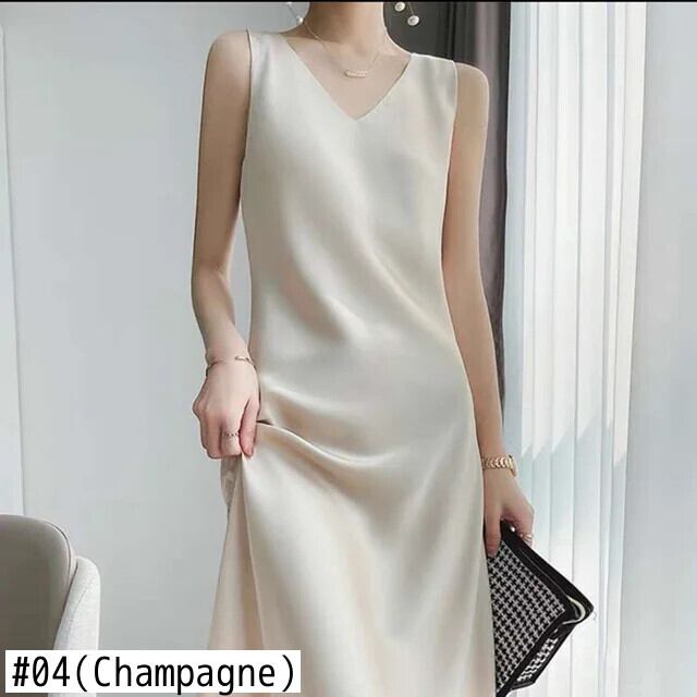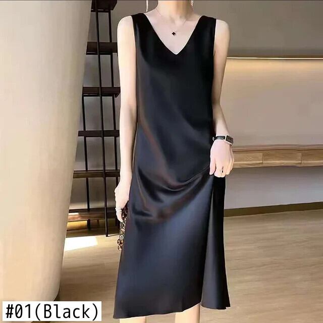 送料無料 V ネックソリッドカラールーズサテンノースリーブドレス女性の 2023 夏特大オフィスレディロングドレス サマー 夏物 Vネック 会社 学校 通勤や通学にも AE1288776679802426341