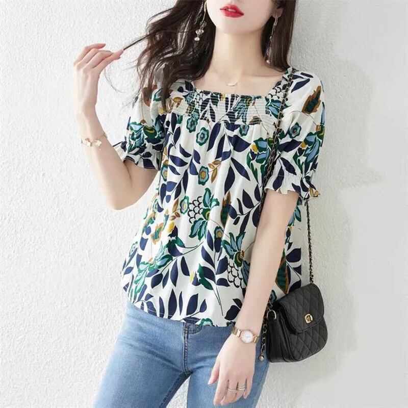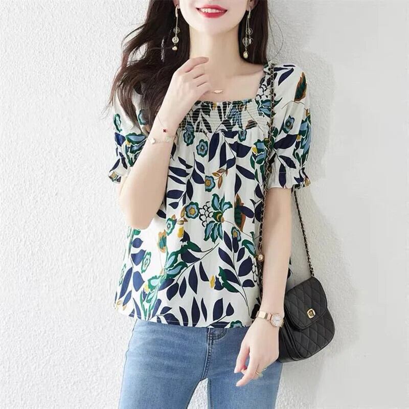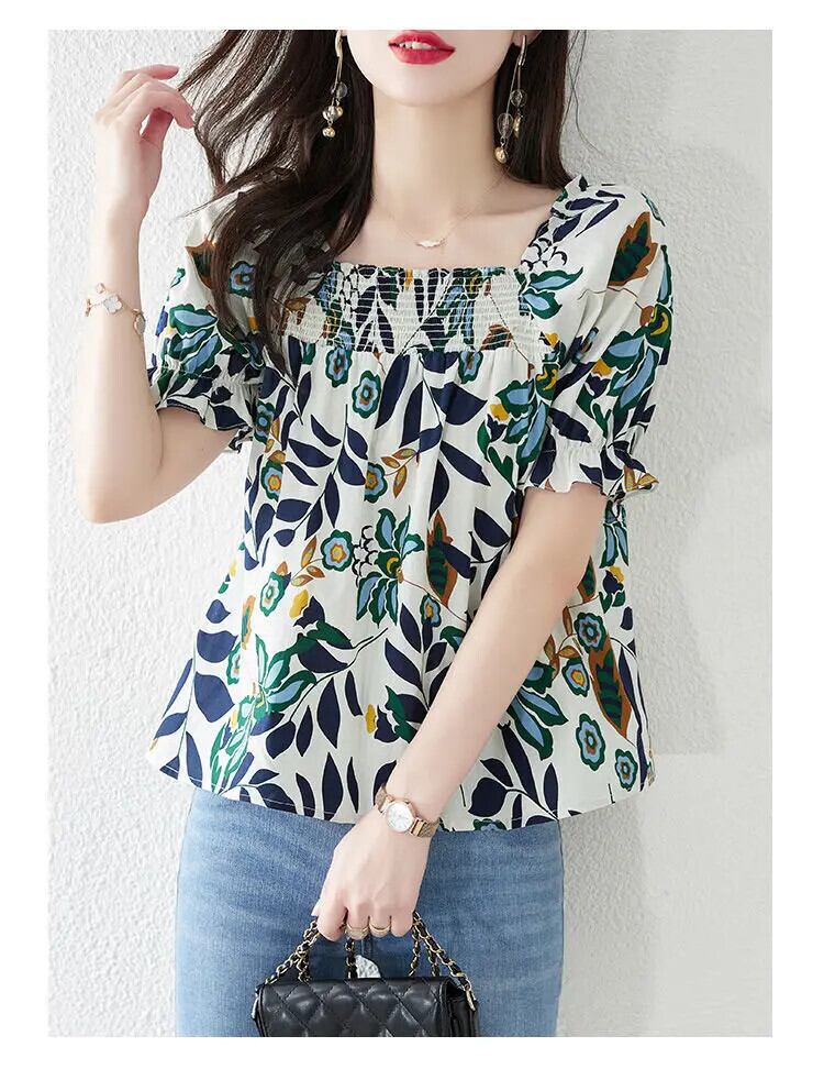 送料無料 スクエアカラー シャーリング プリント ブラウス レディース 2023 春 プルオーバー オールマッチ オフィス レディー シャツ スプリング 春物 スクウェア 会社 学校 通勤や通学にも AE128877666089321895