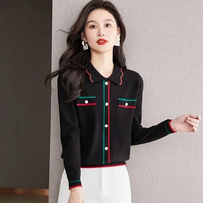 送料無料 ラペルニットスプライスボタンブラウス女性の 2023 秋冬ルーズ通勤トップスシャツ オータム 秋物 ウィンター 冬物 AE1288776664773629383