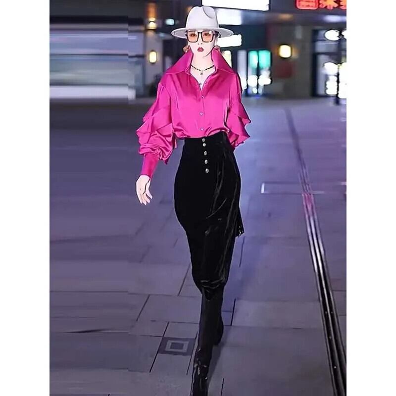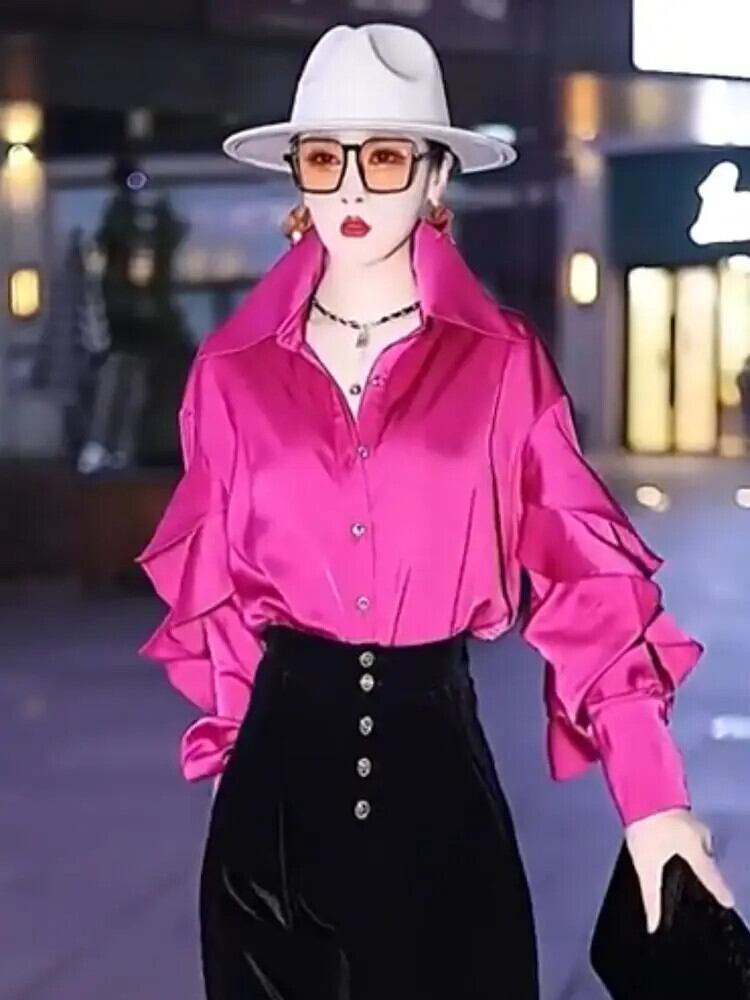 送料無料 ラペル無地バタフライスリーブシャツ女性の 2024 春夏ルーズトップスオフィスレディブラウス スプリング 春物 サマー 夏物 ソリッドカラー 会社 学校 通勤や通学にも AE1288776672942256703