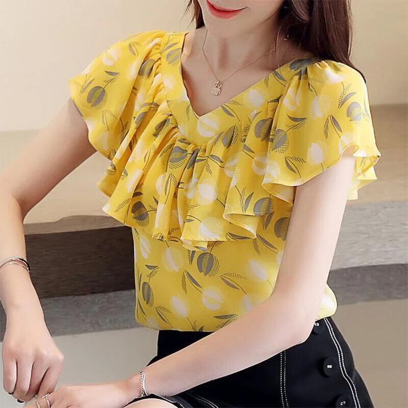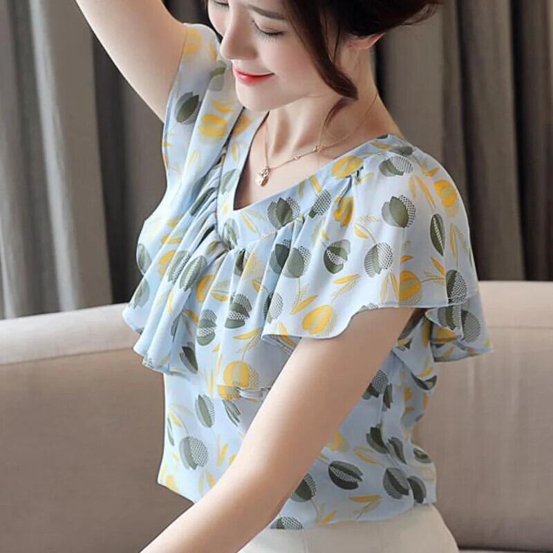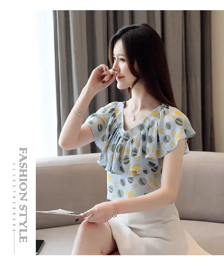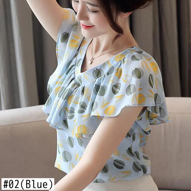 送料無料 ヴィンテージプリント V ネックルーズバタフライスリーブ夏シフォンシャツ半袖プルオーバー女性ブラウス ショート ハーフスリーブ サマー 夏物 Vネック ビンテージ AE1288776631181907379