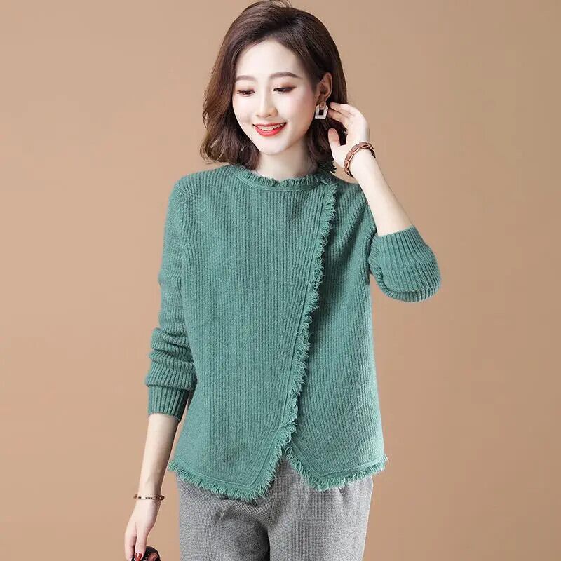 送料無料 O ネックスプライシング非対称テルブラウス女性の 2023 秋冬プルオーバーオールマッチシャツ オータム 秋物 ウィンター 冬物 Oネック AE1288776625843802301