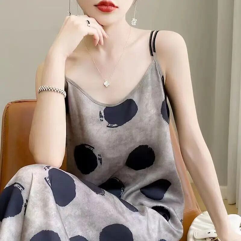 送料無料 V ネック印刷ポルカドットノースリーブドレス女性の 2024 夏ルーズオフィスレディスリップドレス サマー 夏物 Vネック 会社 学校 通勤や通学にも AE1288776662338619811