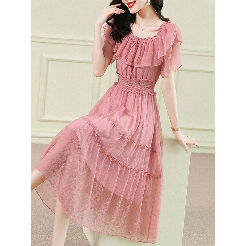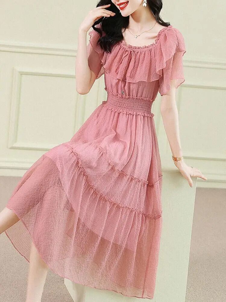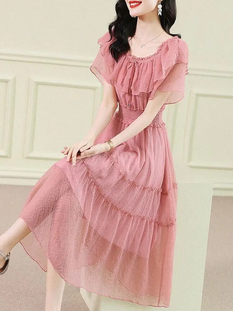 送料無料 ソリッドカラーのレースアップボウシャーリングフリルパーティードレスの女性 2024 夏ゆるい甘いウエディングドレス リボン ラッフル 大人ガーリー スウィート キュート カジュアル サマー 夏物 AE1288776612774866438