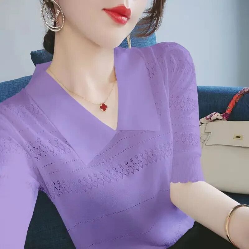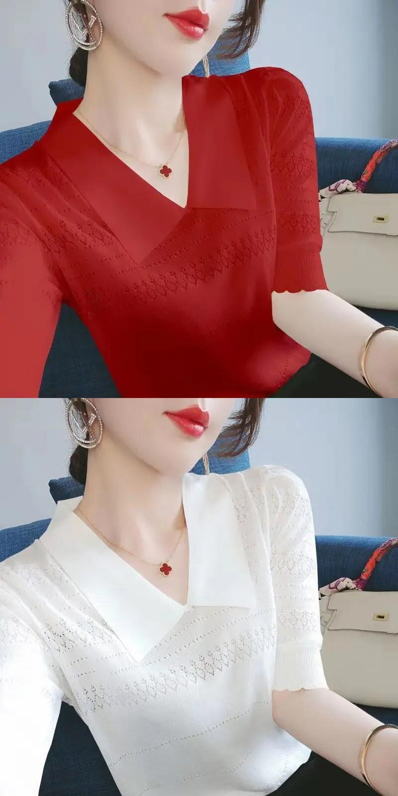 送料無料 V ネック スプライシング中空アウト バタフライ スリーブ ブラウス レディース 2023 夏 オーバーサイズ トップス シャツ サマー 夏物 Vネック AE128877663025666298