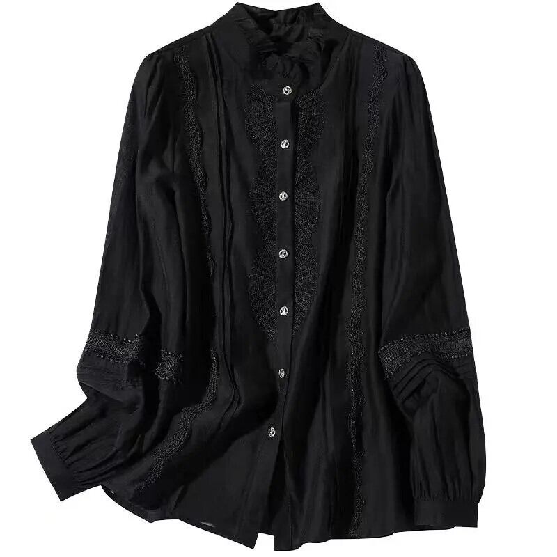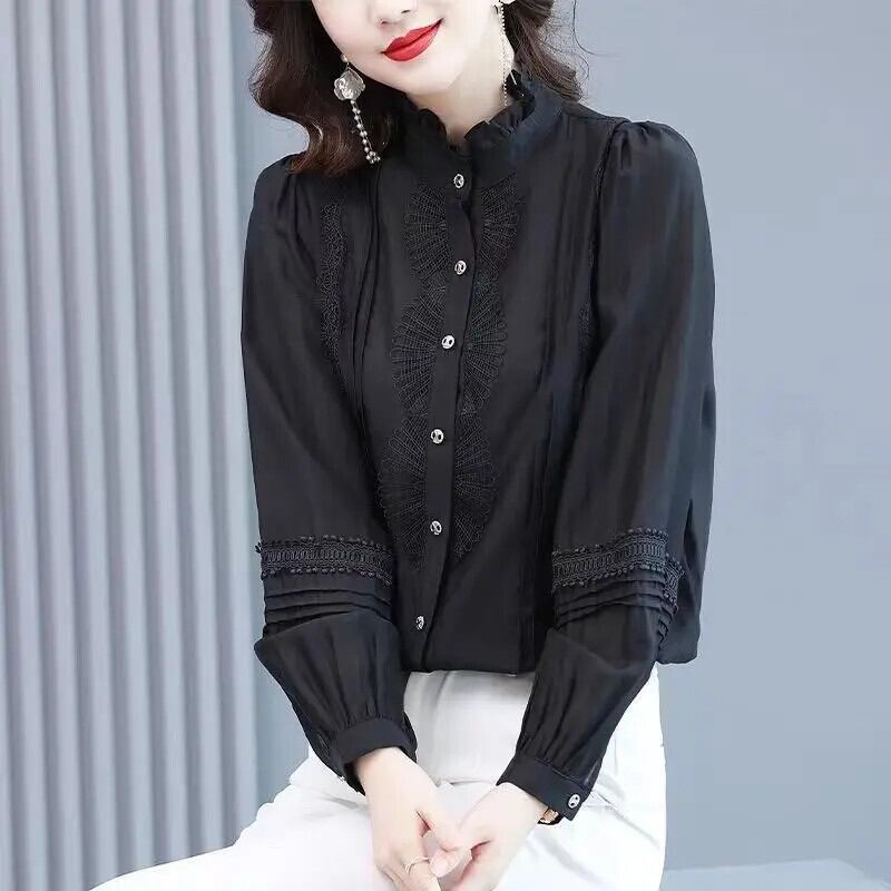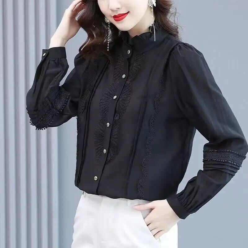 送料無料 スプライスレーステルフォールズフリルシャツ2023秋トップスオールマッチオフィスレディブラウス ラッフル オータム 秋物 会社 学校 通勤や通学にも AE1288776658706945387