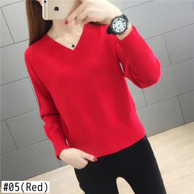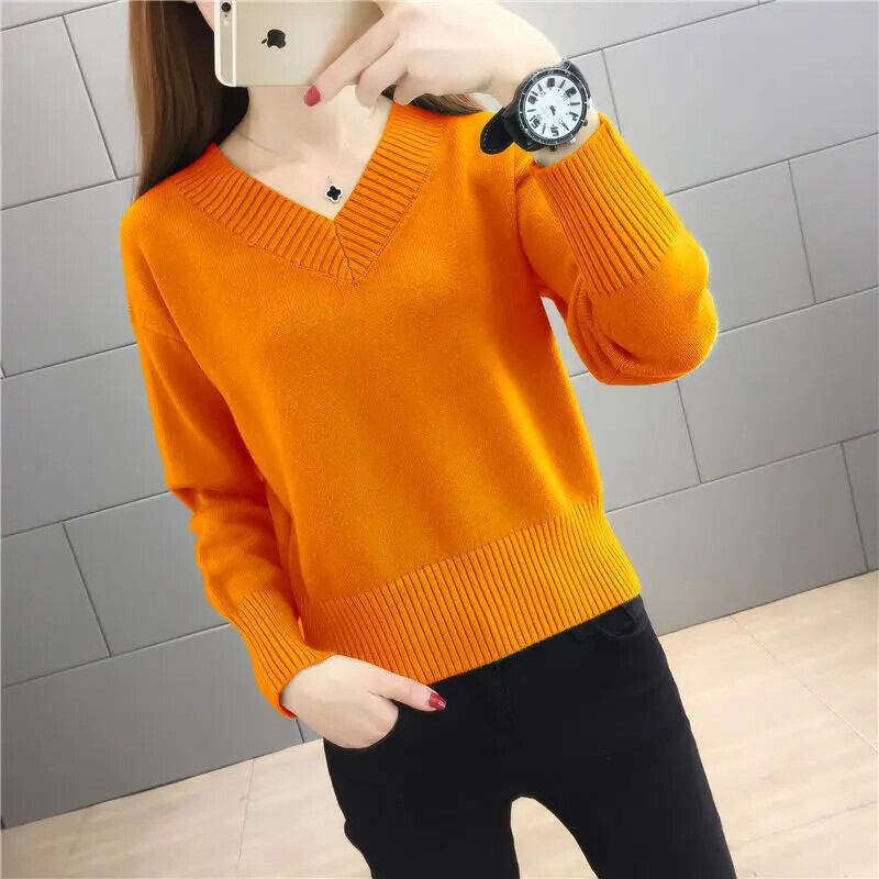 送料無料 V ネックソリッドカラーニットルーズセーター女性の 2022 秋特大プルオーバー暖かいトップス オータム 秋物 Vネック AE128877666306145355