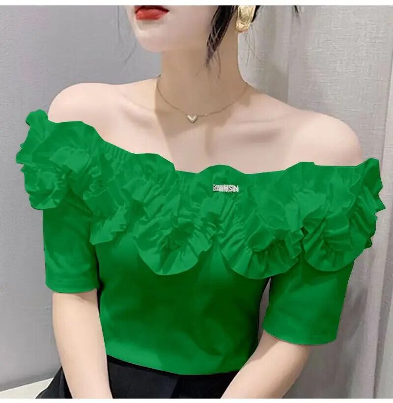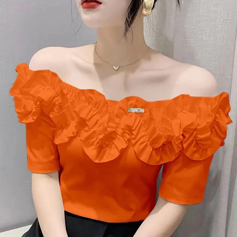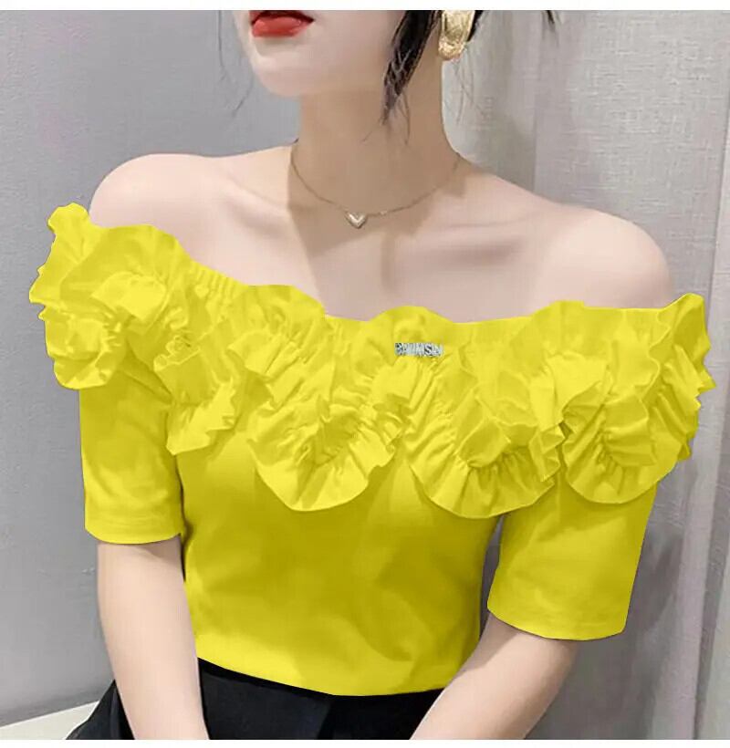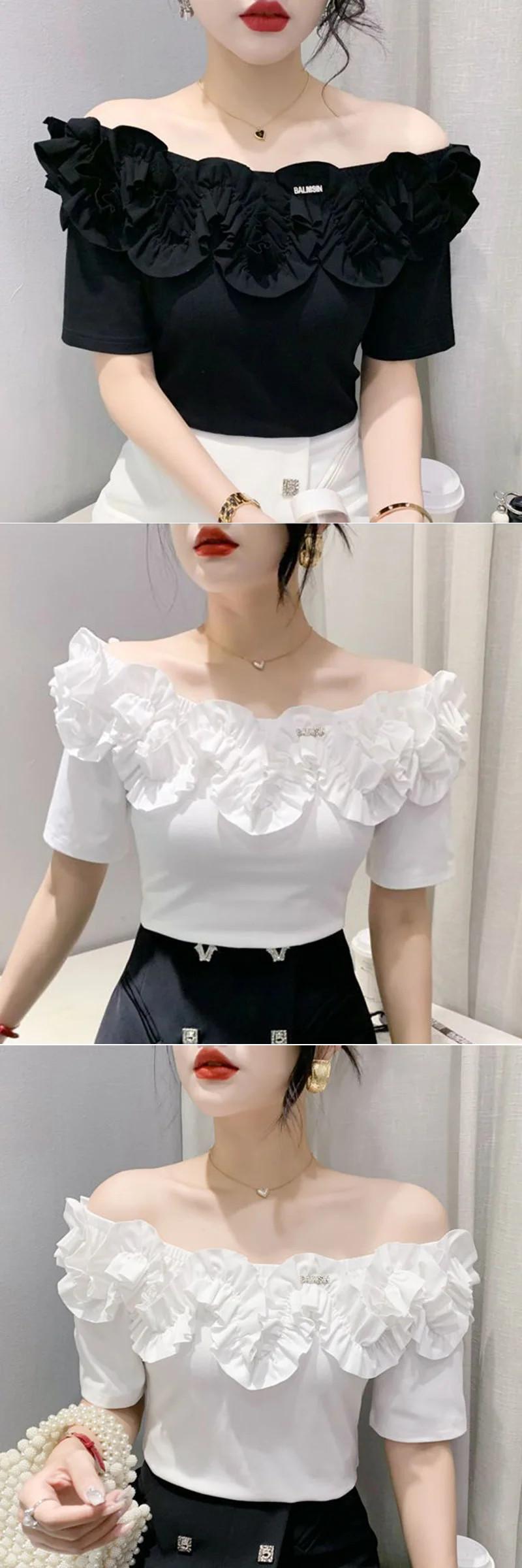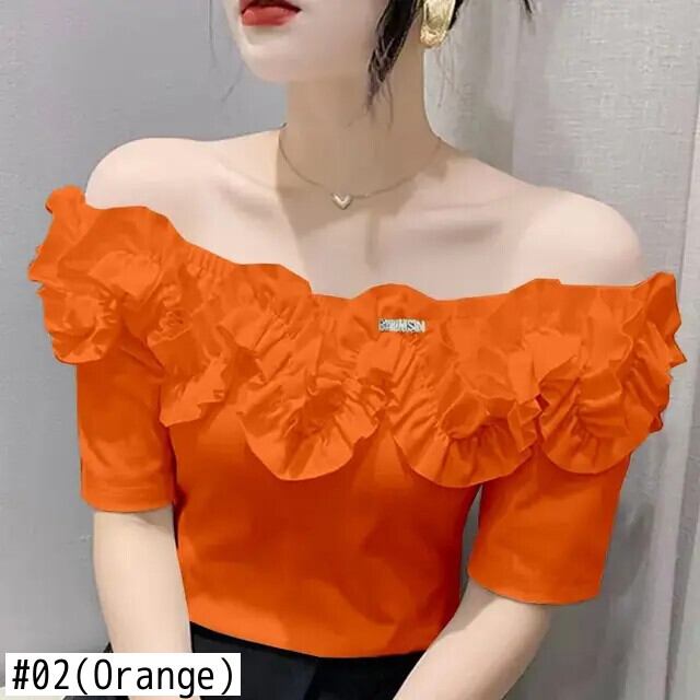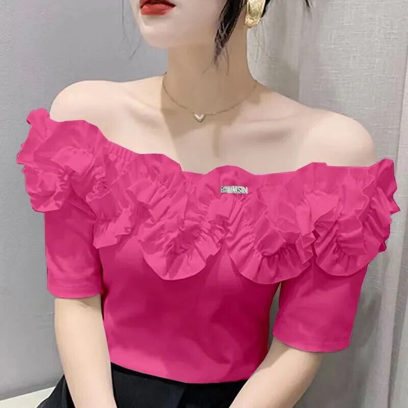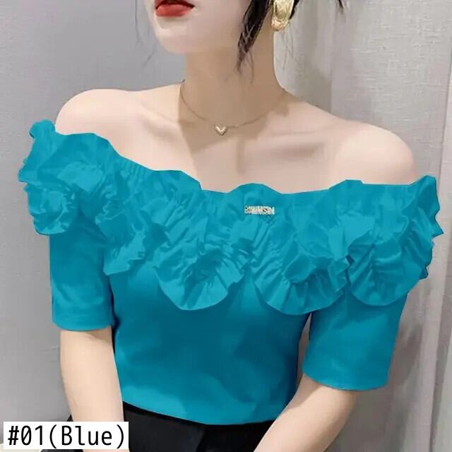 送料無料 スイートスラッシュネックスプライシングオールマッチフリルブラウス 2023 夏プルオーバートップスルーズオフィスレディシャツ ラッフル 大人ガーリー スウィート キュート カジュアル サマー 夏物 会社 学校 通勤や通学にも AE1288776643895830326
