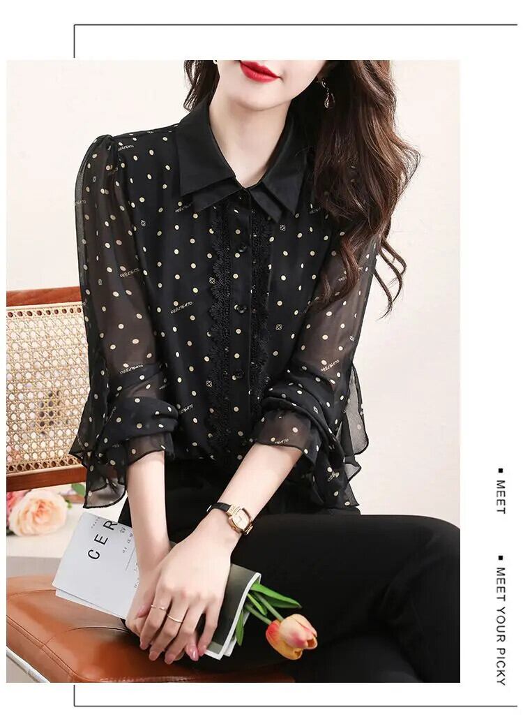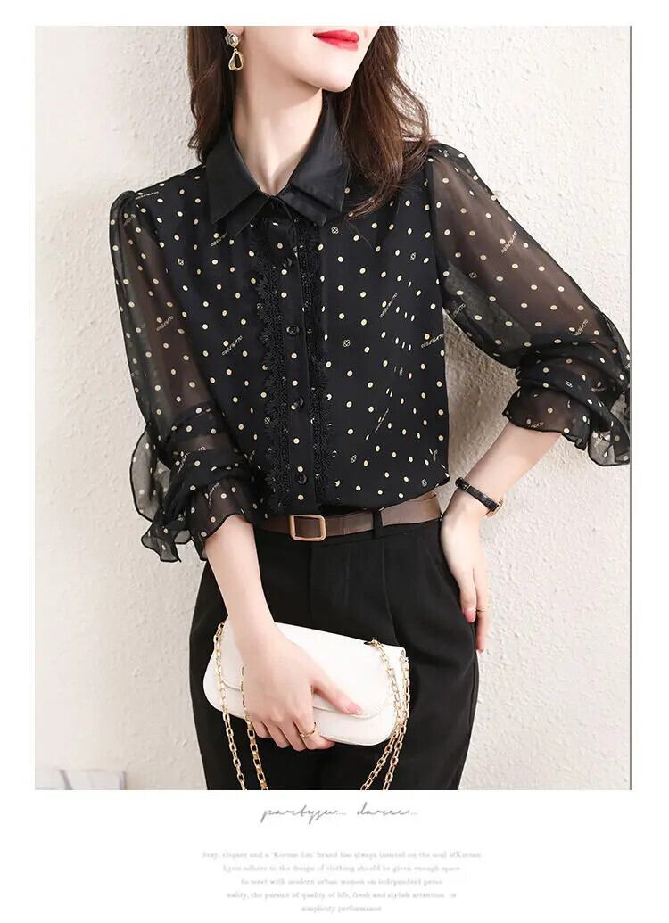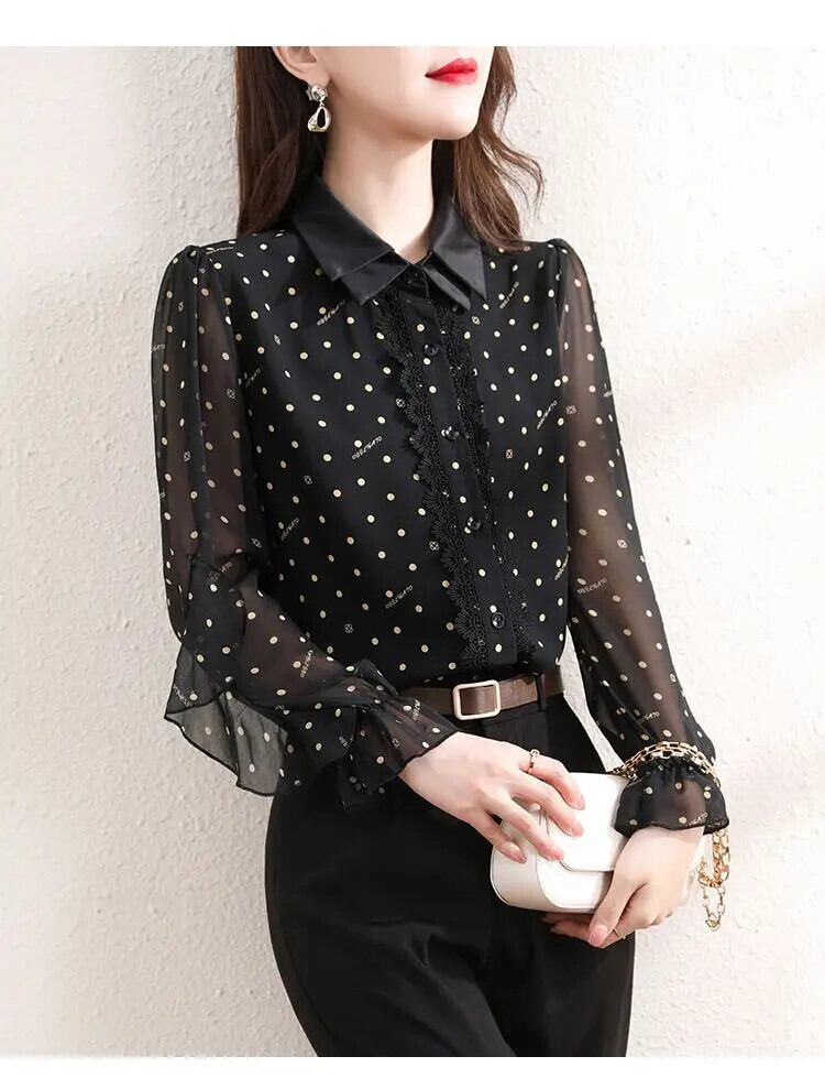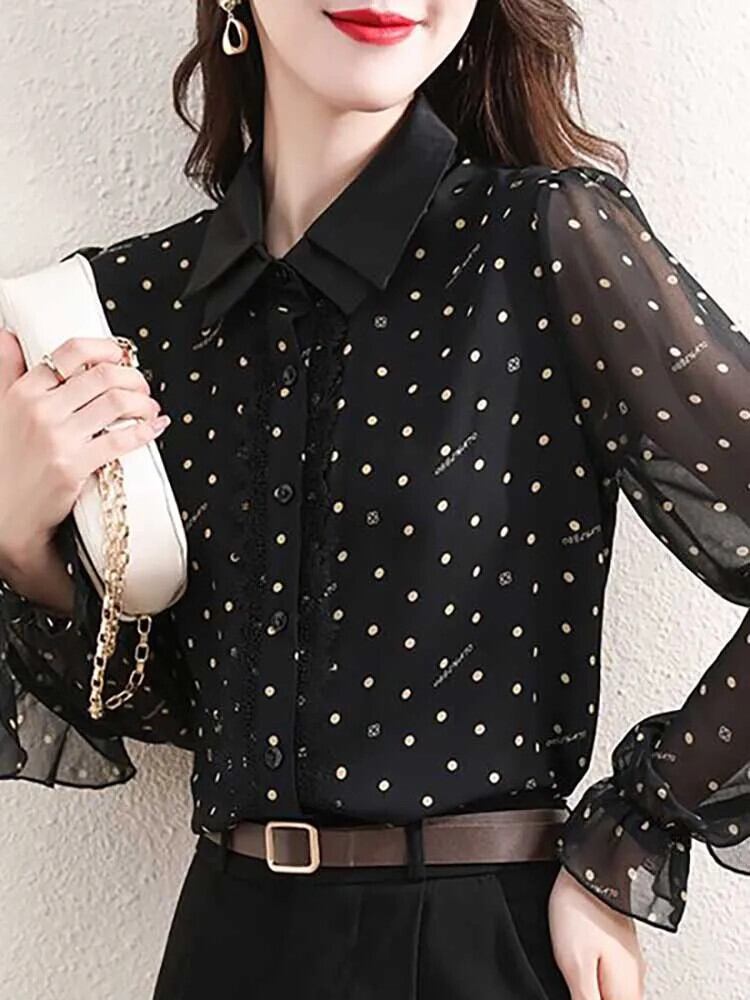 送料無料 レースプリントガーゼ水玉シャツ女性の 2024 春夏ルーズトップスバタフライスリーブブラウス スプリング 春物 サマー 夏物 AE1288776660347677882