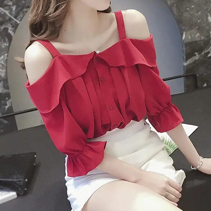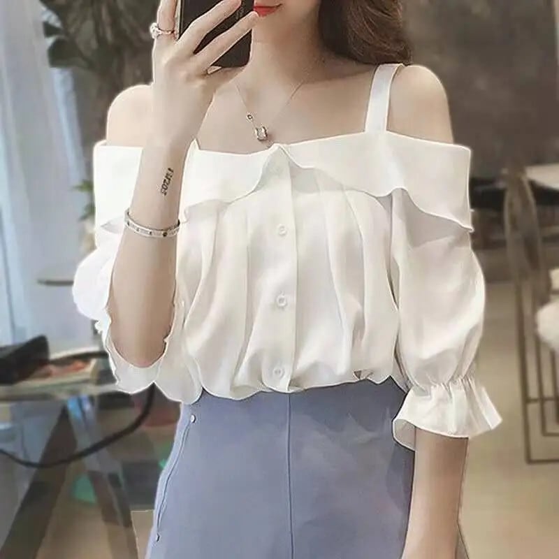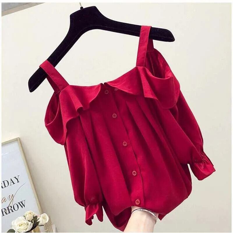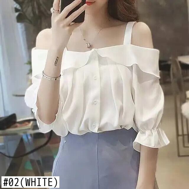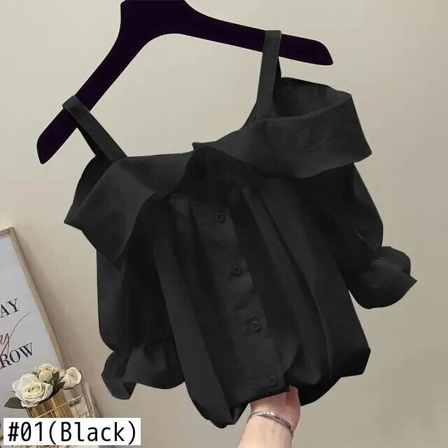 送料無料 スリップスラッシュネックオフショルダーフリルシャツ女性の 2024 夏ルーズスイートトップスバタフライスリーブブラウス ラッフル 大人ガーリー スウィート キュート カジュアル サマー 夏物 AE1288776674938649136