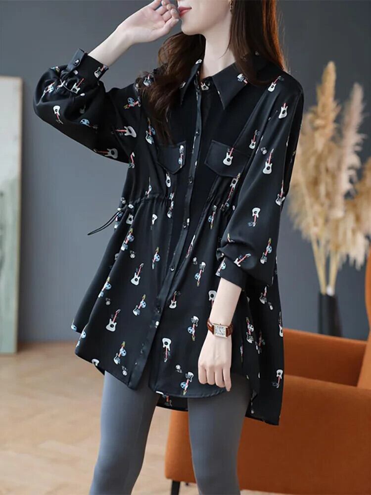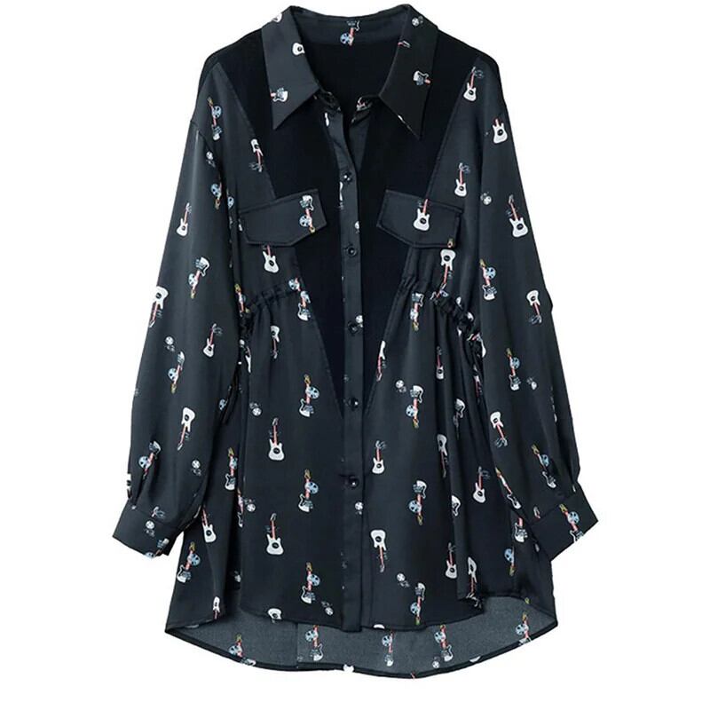 送料無料 プリントスプライシングシャーリング非対称シャツ女性の 2024 春夏ルーズトップス不規則なブラウス スプリング 春物 サマー 夏物 AE1288776624188402454