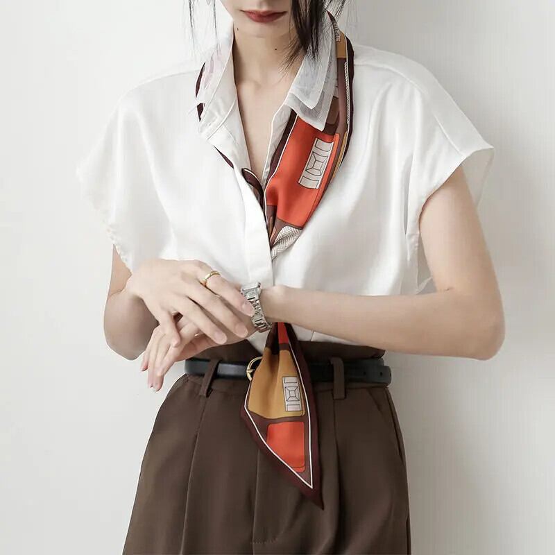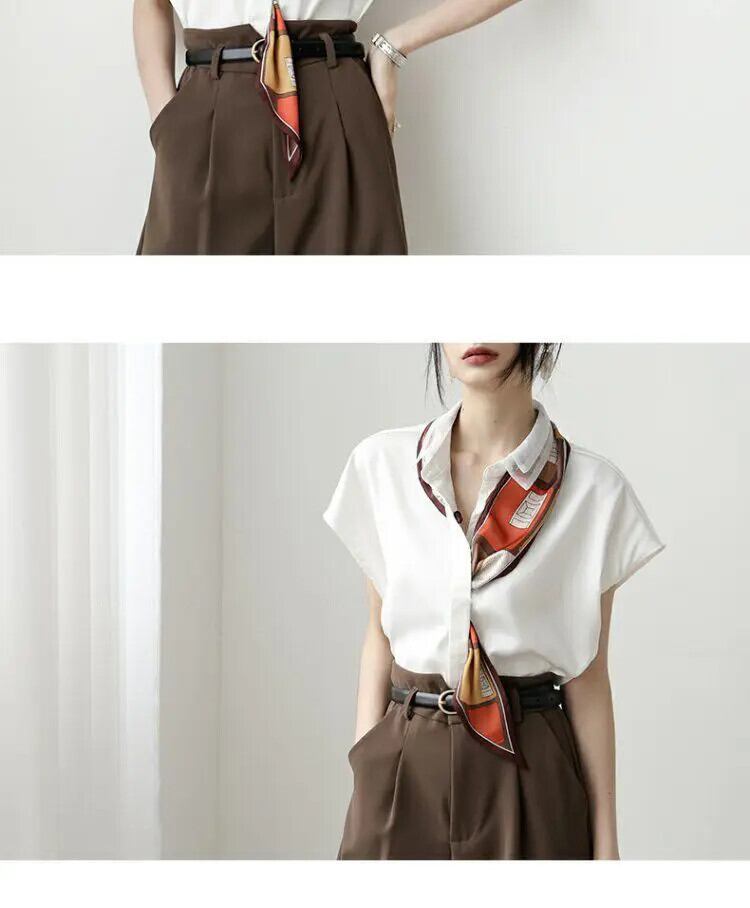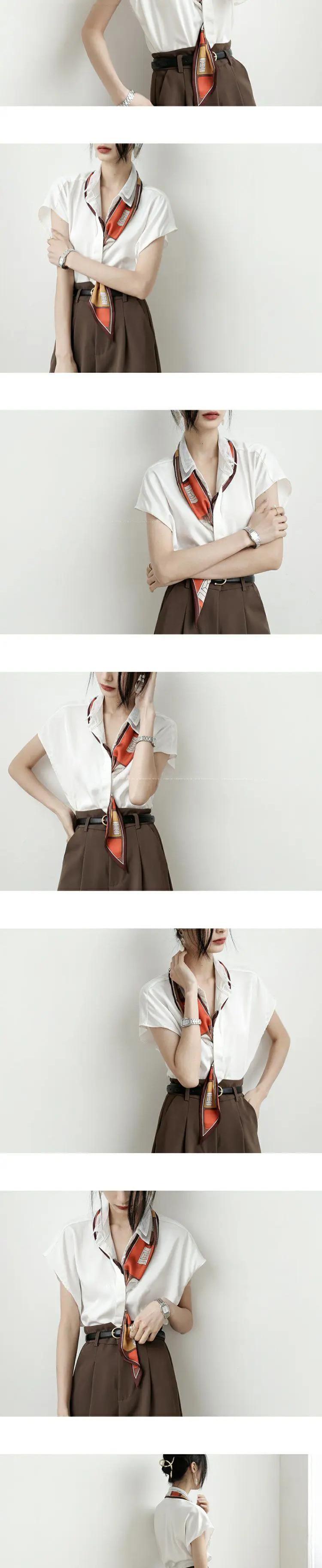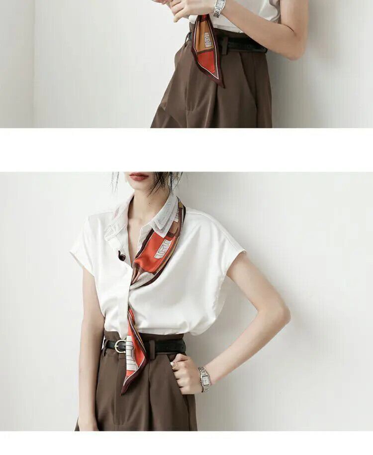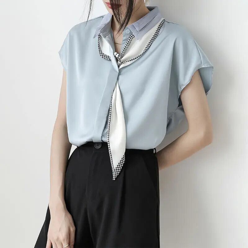 送料無料 スタイリッシュなラペルレースアップ半袖プラスサイズボタンシフォンシャツ夏ルーズネクタイトップス通勤女性のブラウス ショート ハーフスリーブ 大きめサイズ サマー 夏物 AE1288776650468932126