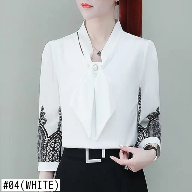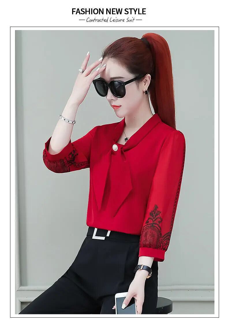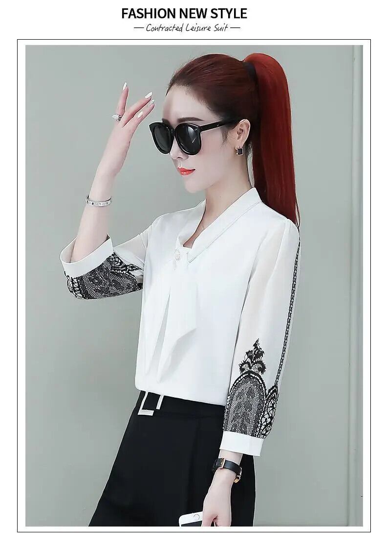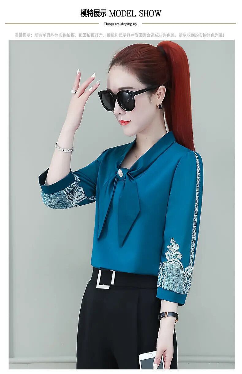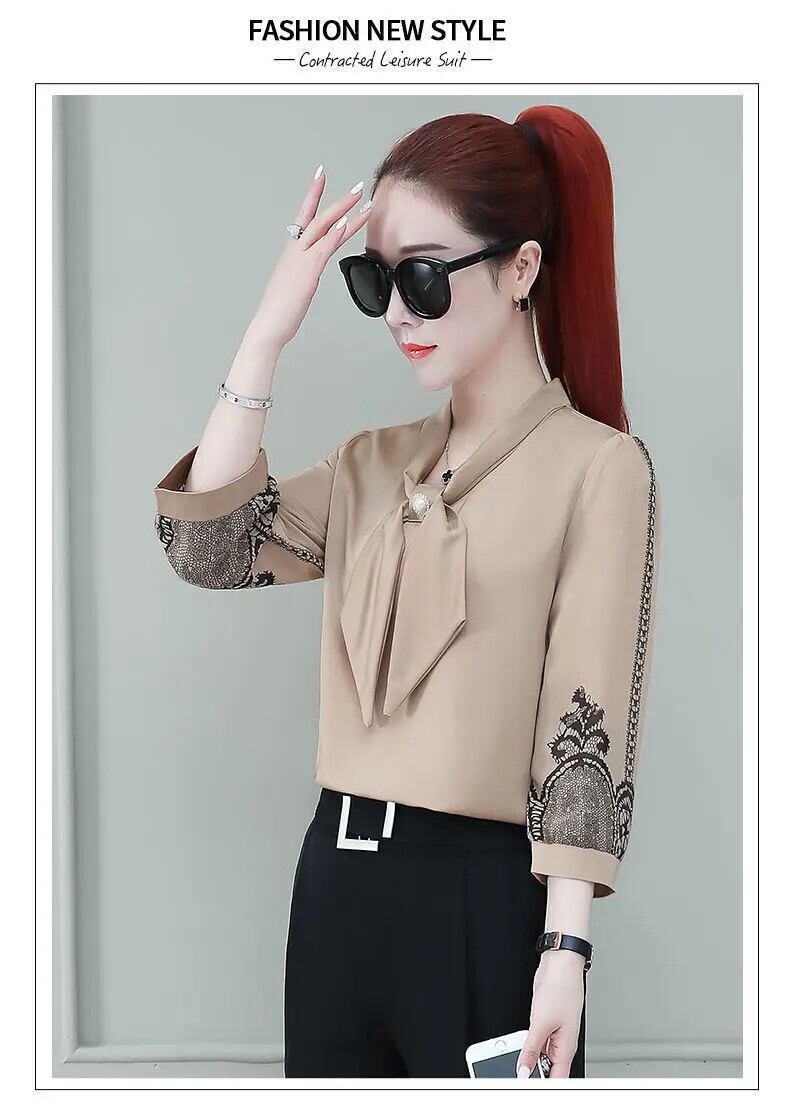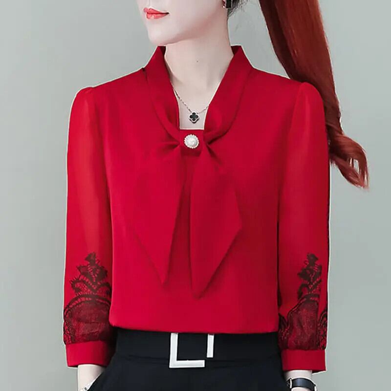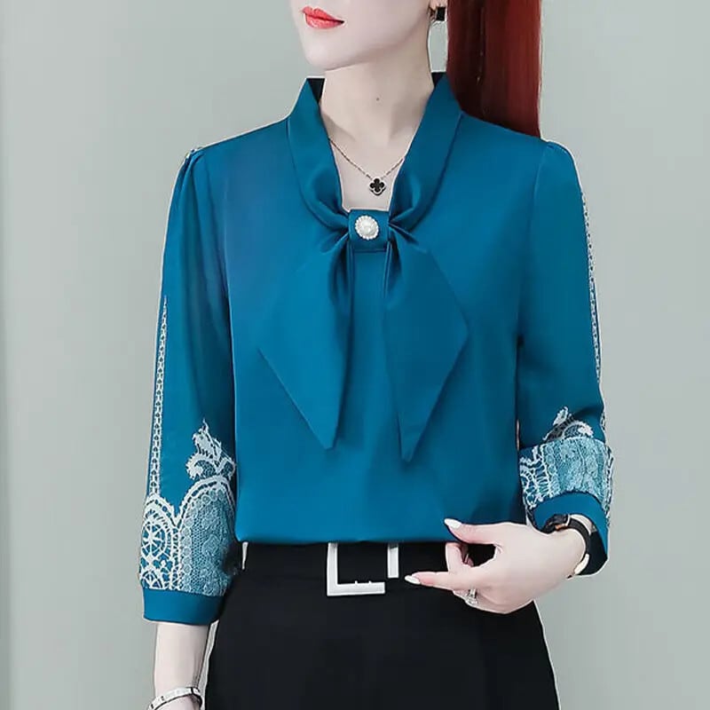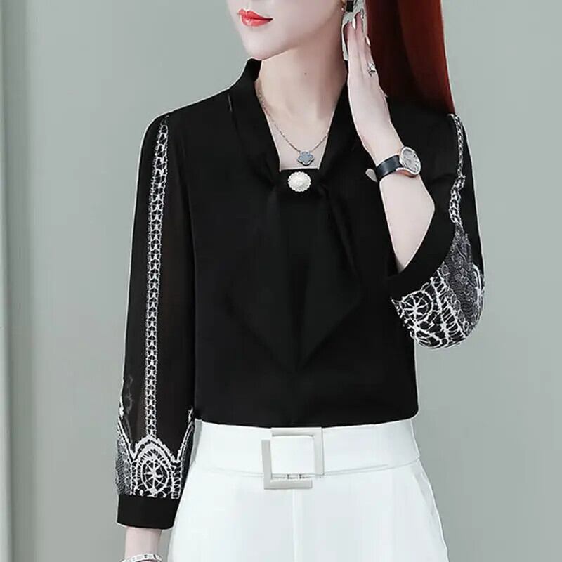送料無料 プリントレースビーズリボンブラウス女性の 2022 秋特大プルオーバーオールマッチオフィスレディシャツ オータム 秋物 会社 学校 通勤や通学にも AE1288776690456069415