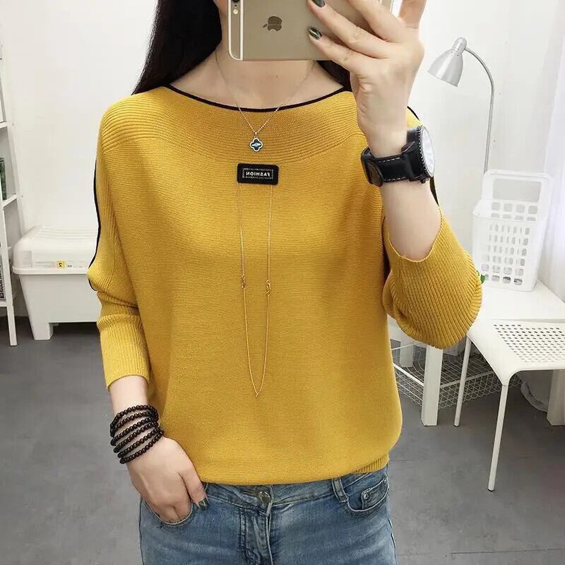 送料無料 スラッシュネックスプライスチェーンバットウィングスリーブブラウス女性の 2023 秋オーバーサイズトップス通勤シャツ オータム 秋物 AE1288776620399376777