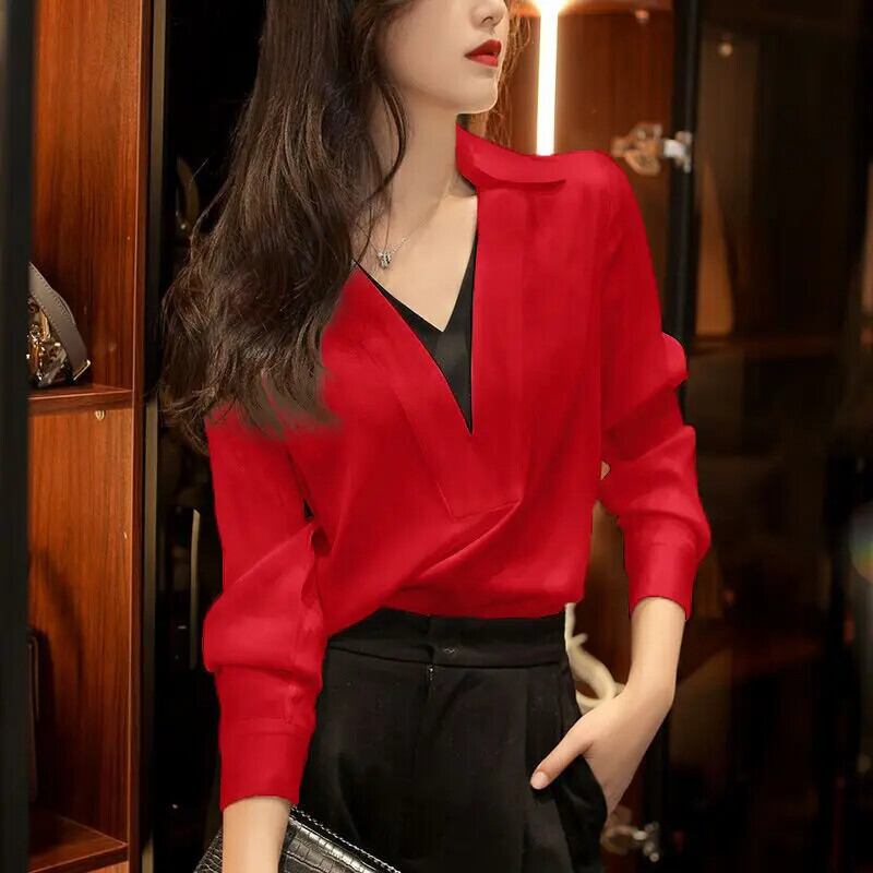 送料無料 ラペルスプライスフェイクツーピースブラウス女性の 2022 秋ルーズプルオーバーオールマッチオフィスレディシャツ オータム 秋物 会社 学校 通勤や通学にも AE1288776655554513807