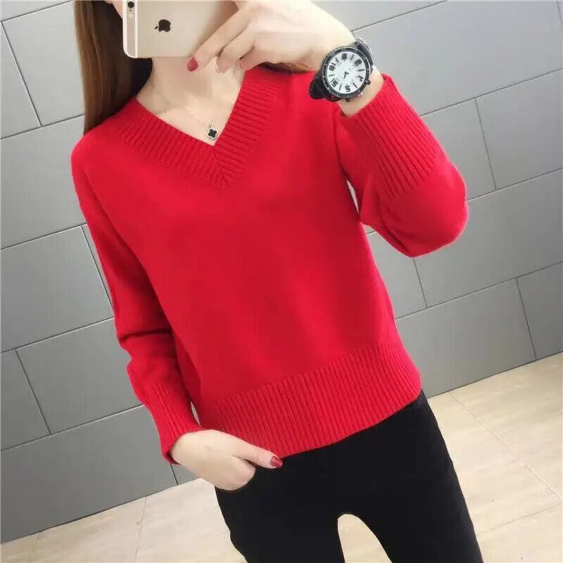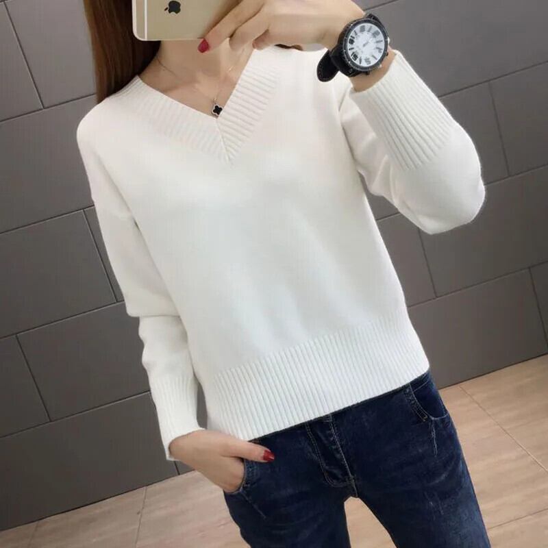 送料無料 V ネックソリッドカラーオールマッチブラウス女性の 2024 春特大プルオーバールーズシャツ スプリング 春物 Vネック AE1288776615925775609