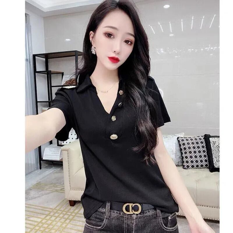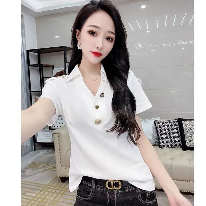 送料無料 V ネックスプライスボタン半袖ブラウスレディース 2023 夏オーバーサイズトップスオールマッチシャツ ショート ハーフスリーブ サマー 夏物 Vネック AE1288776634969315417