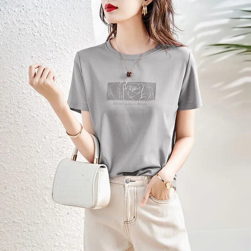 送料無料 O ネック半袖レタープリントブラウス女性の 2023 夏プルオーバールーズシャツ ショート ハーフスリーブ サマー 夏物 Oネック AE1288776650033675623