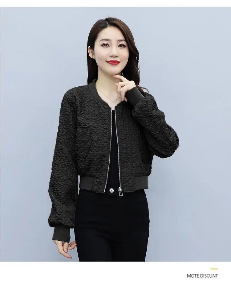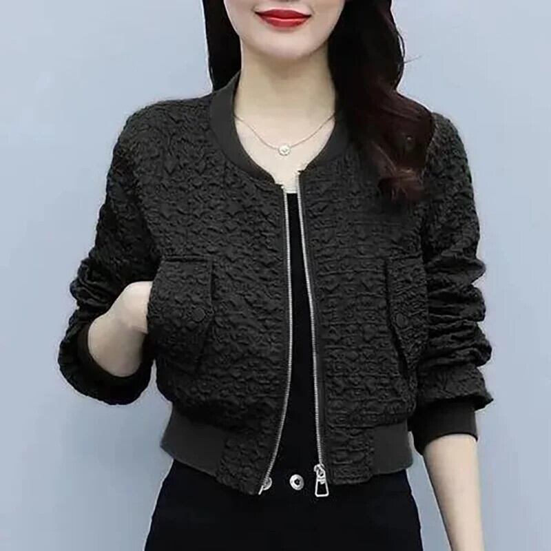 送料無料 O ネックジッパーポケットソリッドカラーひだジャケット女性の 2023 秋冬ルーズ通勤トップスコート オータム 秋物 ウィンター 冬物 Oネック AE1288776636081626822