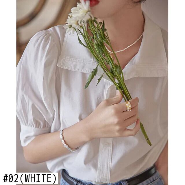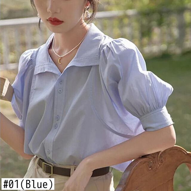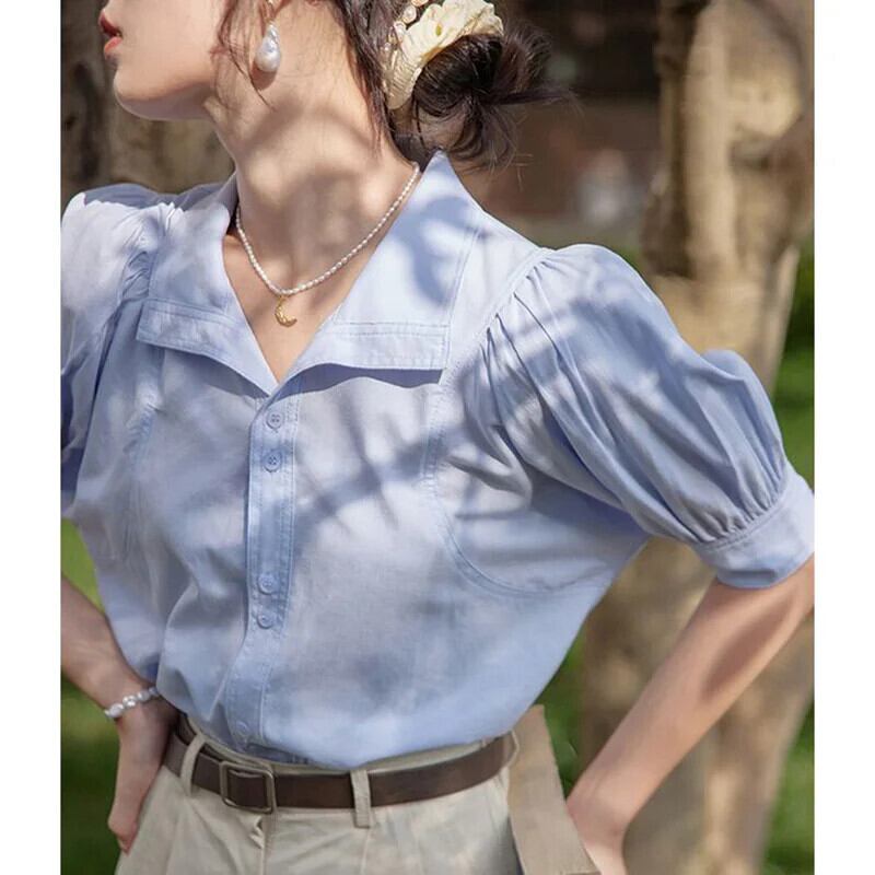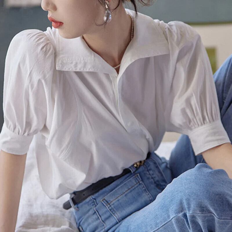 送料無料 ルーズソリッドカラーひだパフスリーブシフォンシャツ2023夏トップスオフィスレディブラウス サマー 夏物 会社 学校 通勤や通学にも AE1288776635007801188