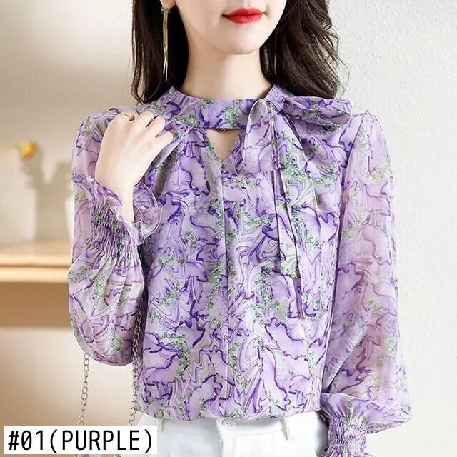 送料無料 ヴィンテージプリントレースアップスリーブ花柄ブラウス女性の 2023 秋特大トップスオフィスレディシャツ オータム 秋物 ビンテージ 会社 学校 通勤や通学にも AE1288776626353255603