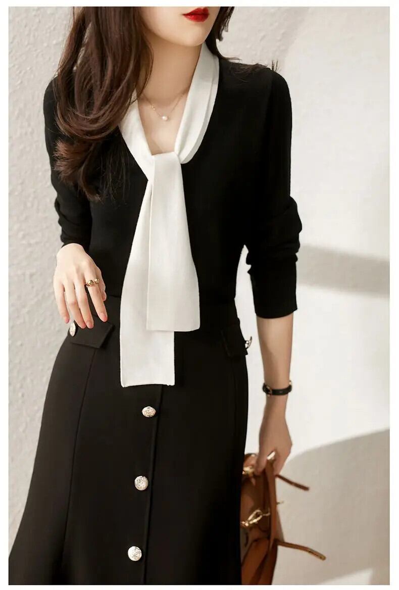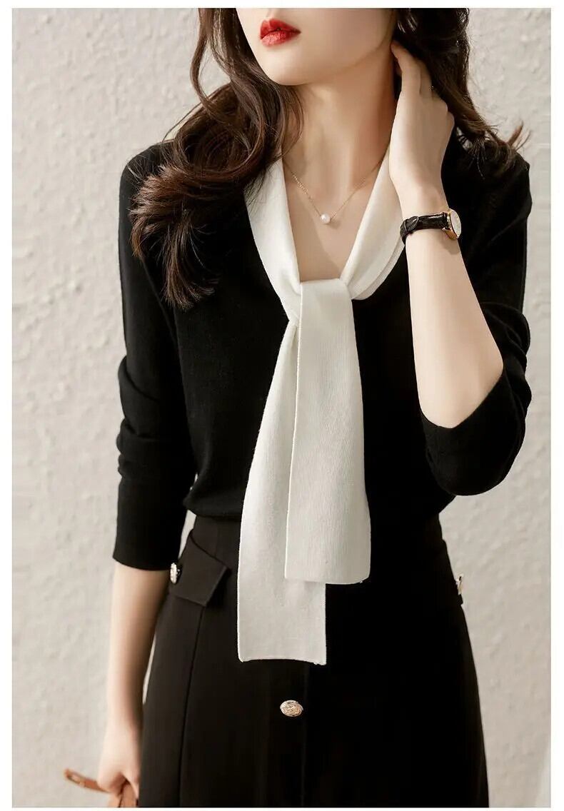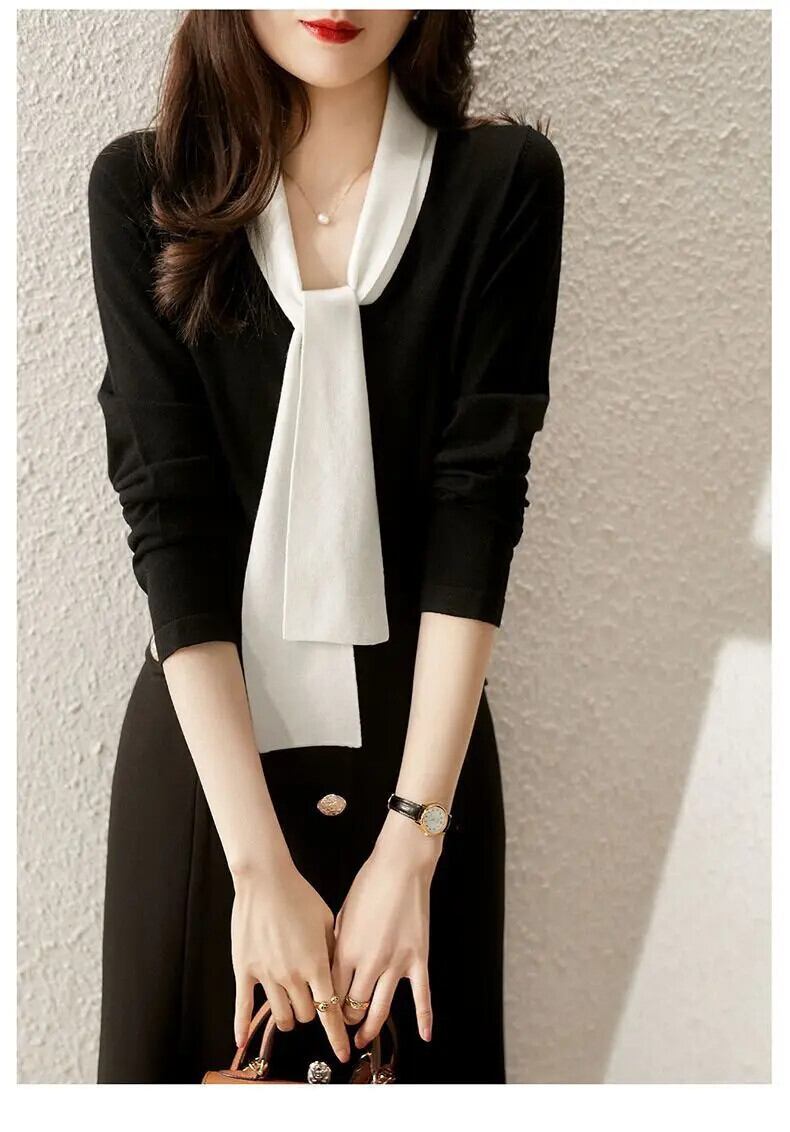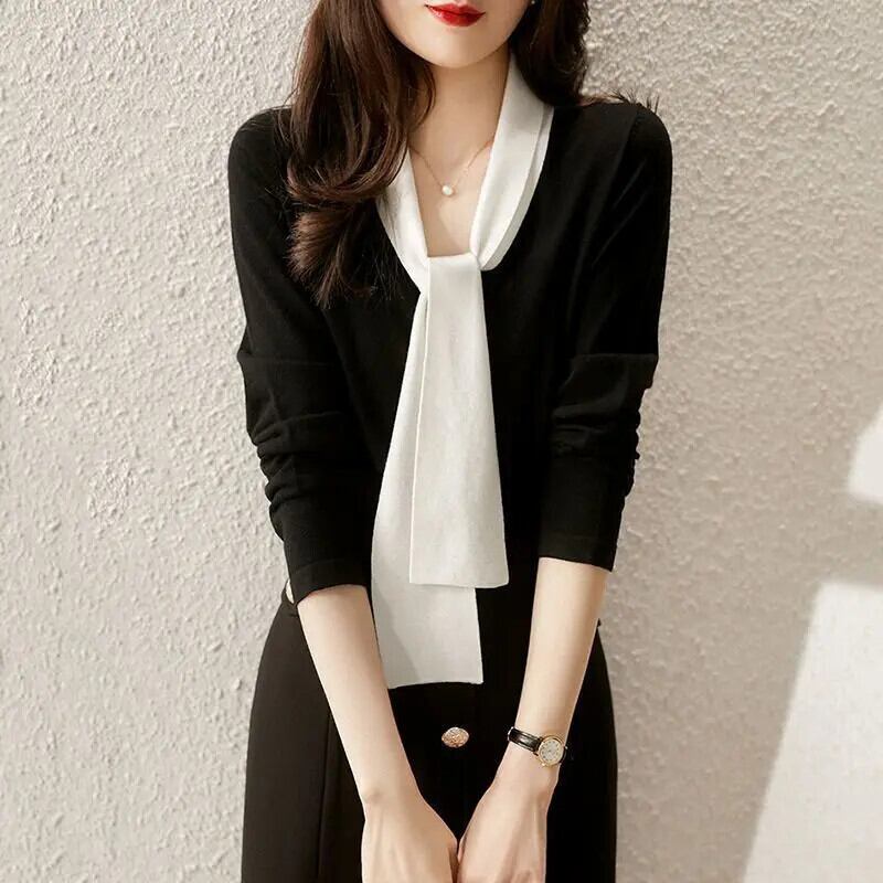 送料無料 V ネックスプライシングルーズレースアップブラウス女性の 2022 秋特大プルオーバーオールマッチオフィスレディシャツ オータム 秋物 Vネック 会社 学校 通勤や通学にも AE1288776699302493264