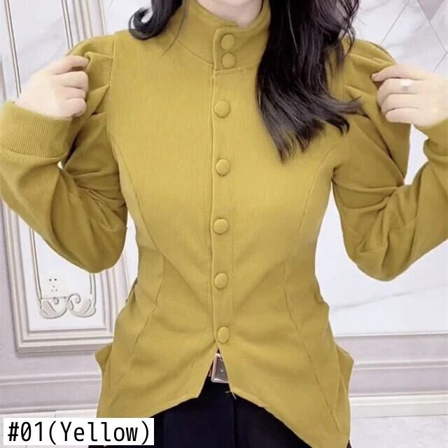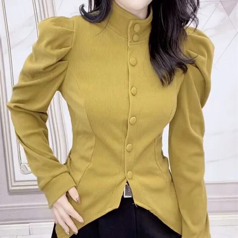 送料無料 スタンドカラーボタン非対称シャツ女性の 2023 秋冬ルーズオールマッチトップスパフスリーブブラウス オータム 秋物 ウィンター 冬物 AE1288776674154463113