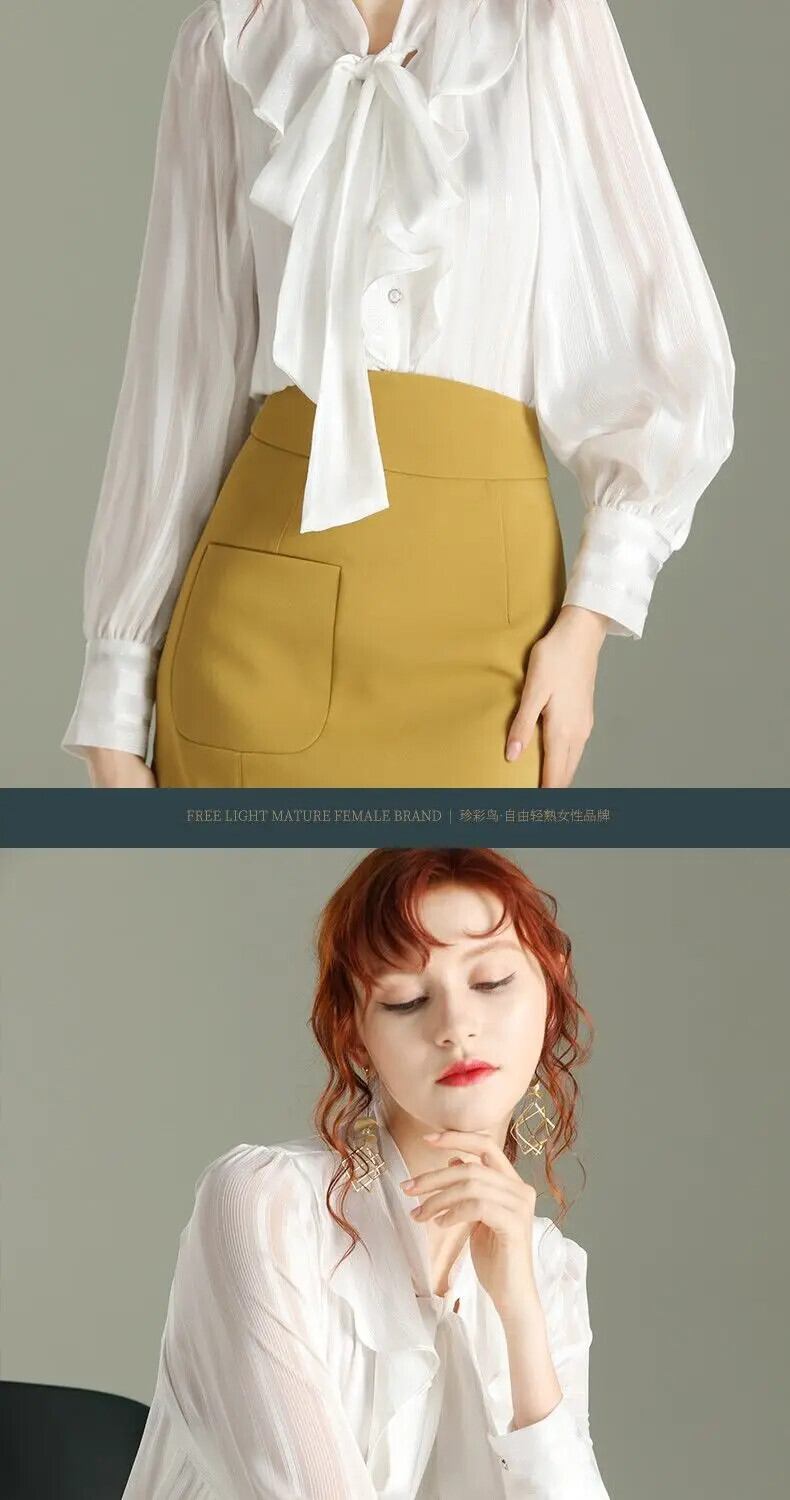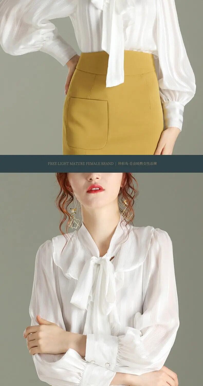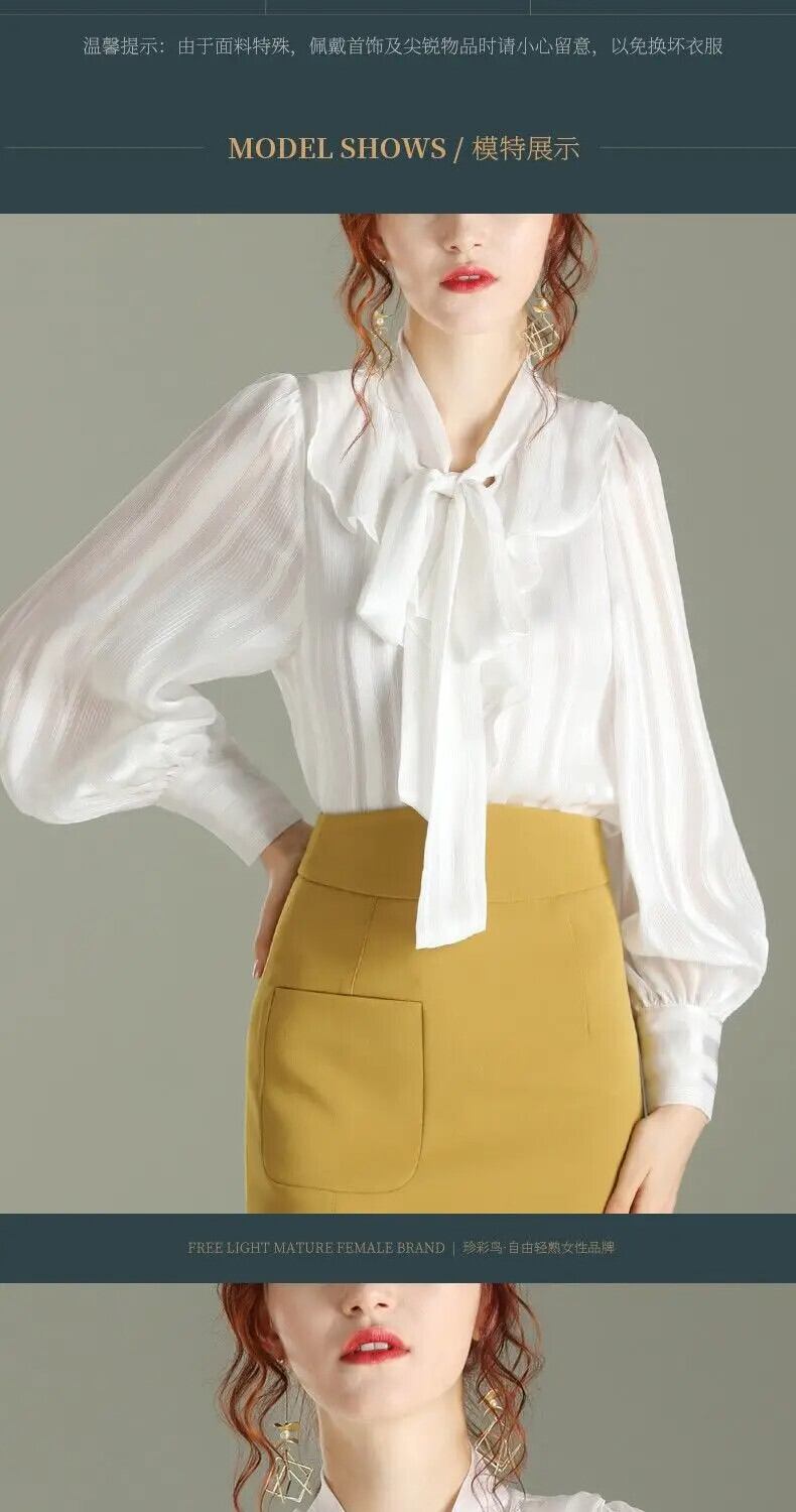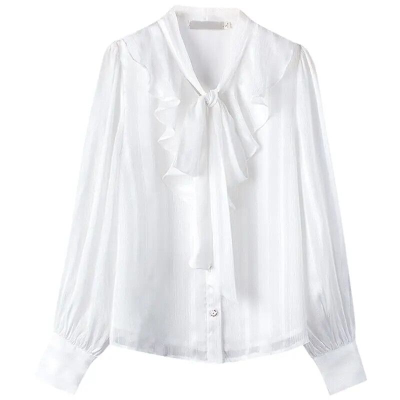 送料無料 リボン パフ スリーブ フリル ルーズ シフォン シャツ ソリッド カラー 長袖 トップス スイート プラス サイズ ブラウス ロング ラッフル 大きめサイズ 大人ガーリー スウィート キュート カジュアル ソリッドカラー AE1288776699038372544