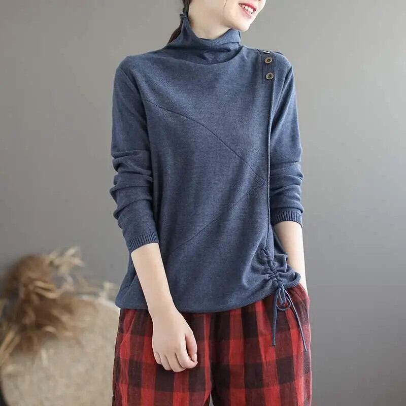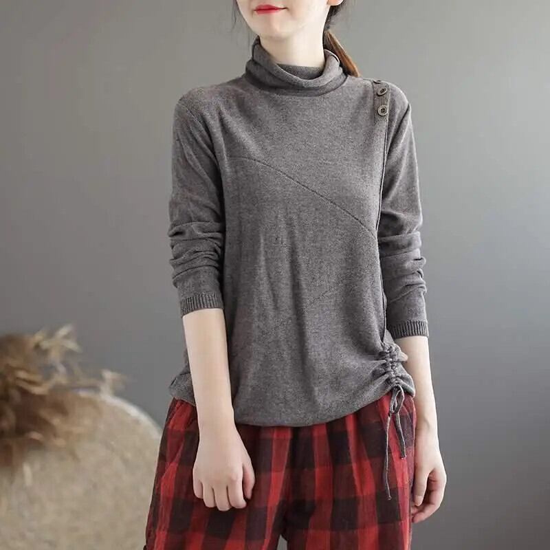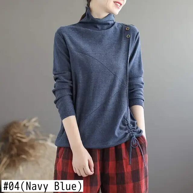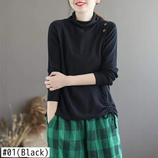 送料無料 タートルネックボタン無地シャーリングセーター女性の 2023 秋冬ルーズ通勤プルオーバートップス オータム 秋物 ウィンター 冬物 ソリッドカラー AE1288776652624248389